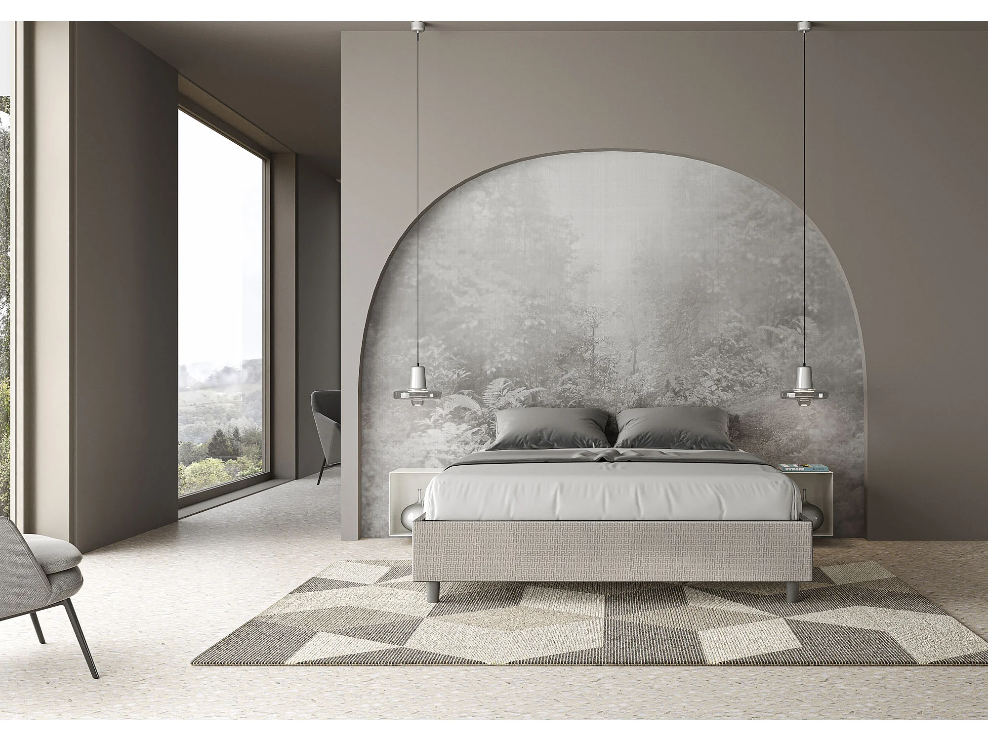 Lit coffre double capitonné 160x190 Labirinto 01 tissu Azelia blanc