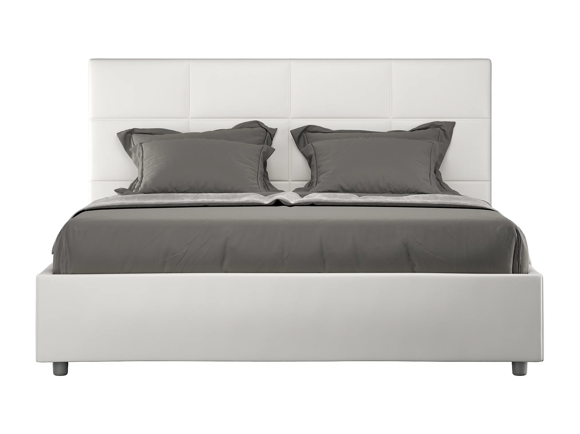 Lit coffre double capitonné 160x190 simili cuir blanc Mika