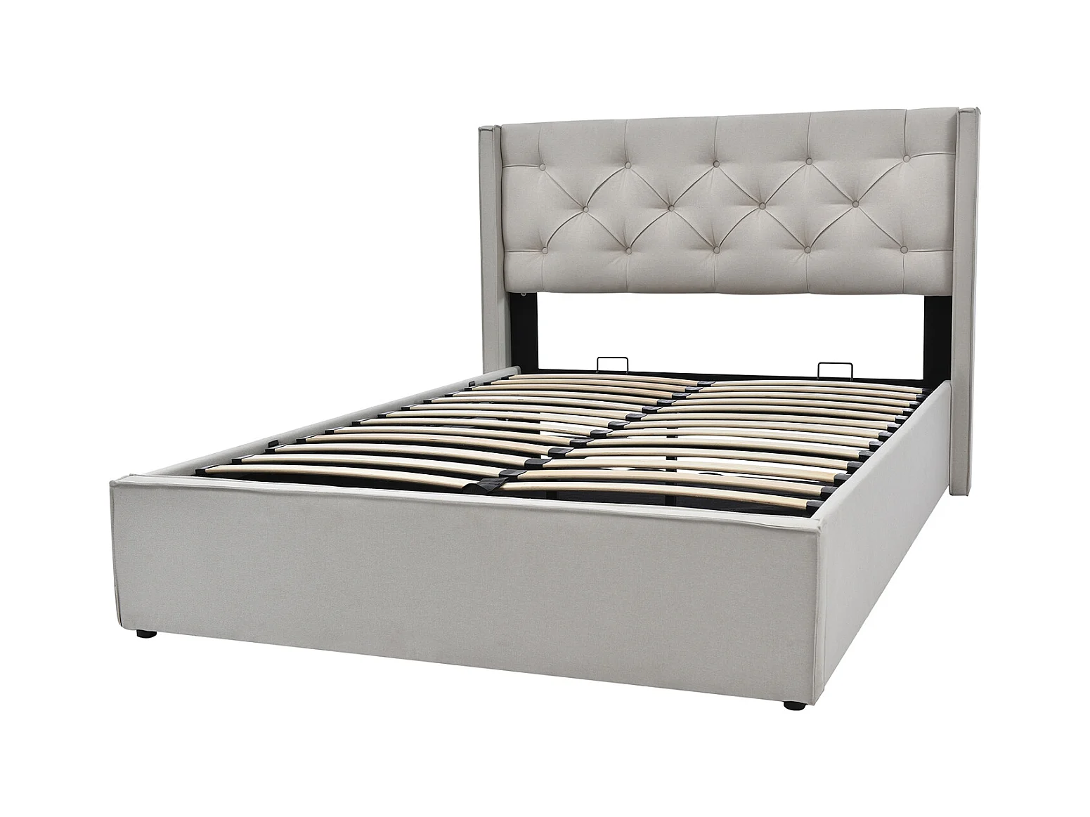 Lit coffre double Lit capitonné 140x200cm,Lit avec sommier à lattes métalliques, Cadre de lit moderne avec espace de rangement, Coton, Gris clair(Avec matelas)