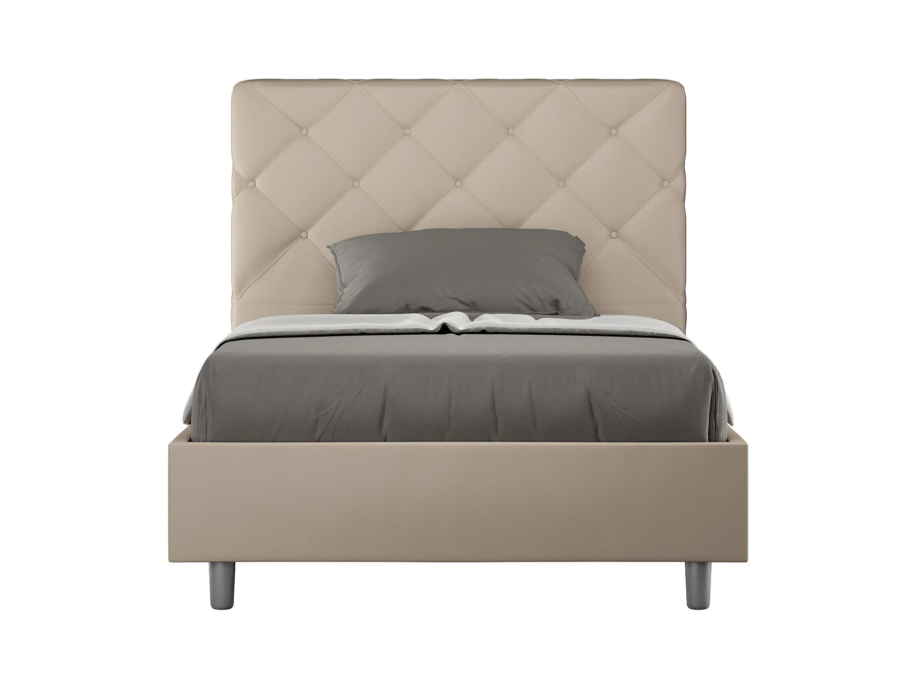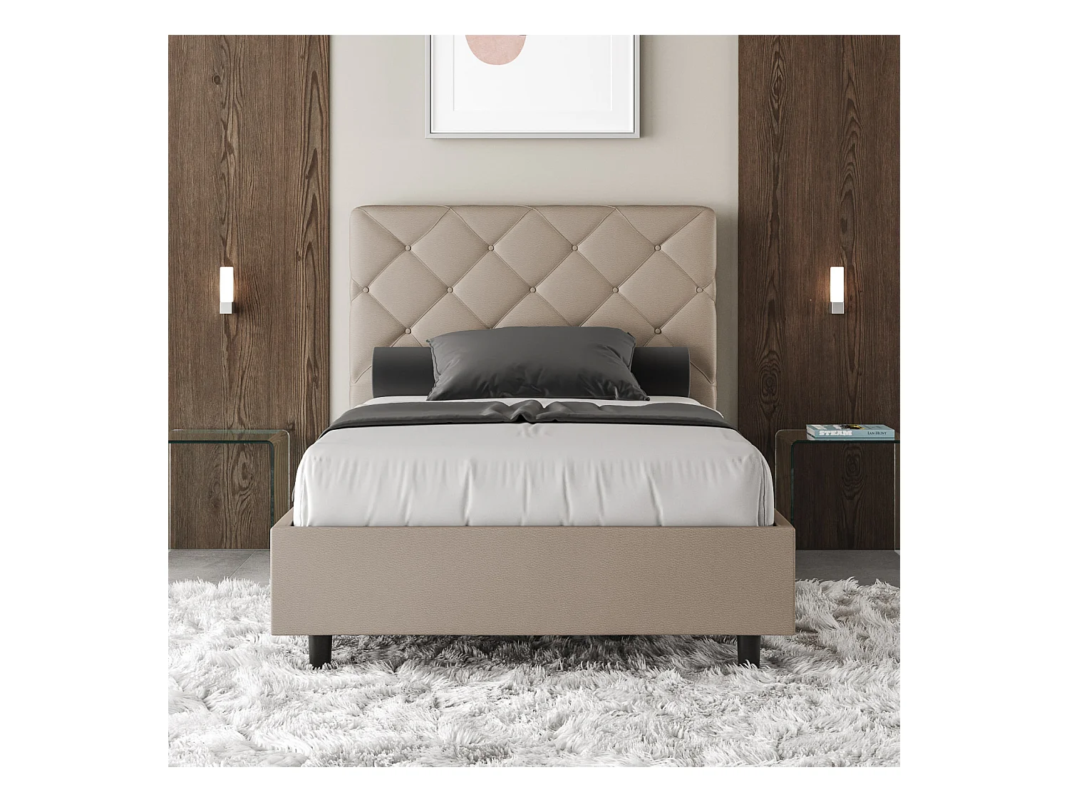 Lit coffre rembourrée 140x190 similicuir taupe Priya