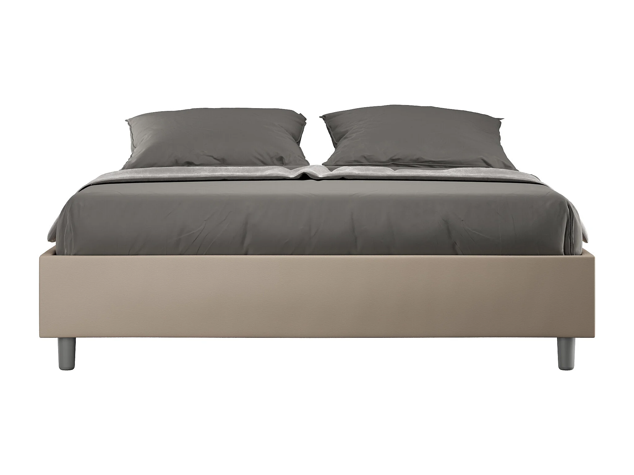 Lit coffre double relevable capitonné simili cuir tourterelle Azelia 160x190