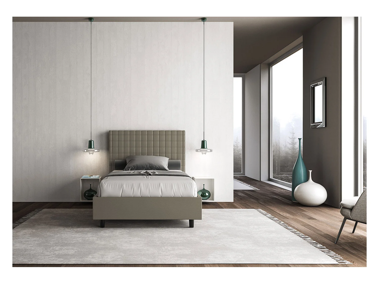 Lit coffre rembourrée 140x190 similicuir cappuccino Sunny