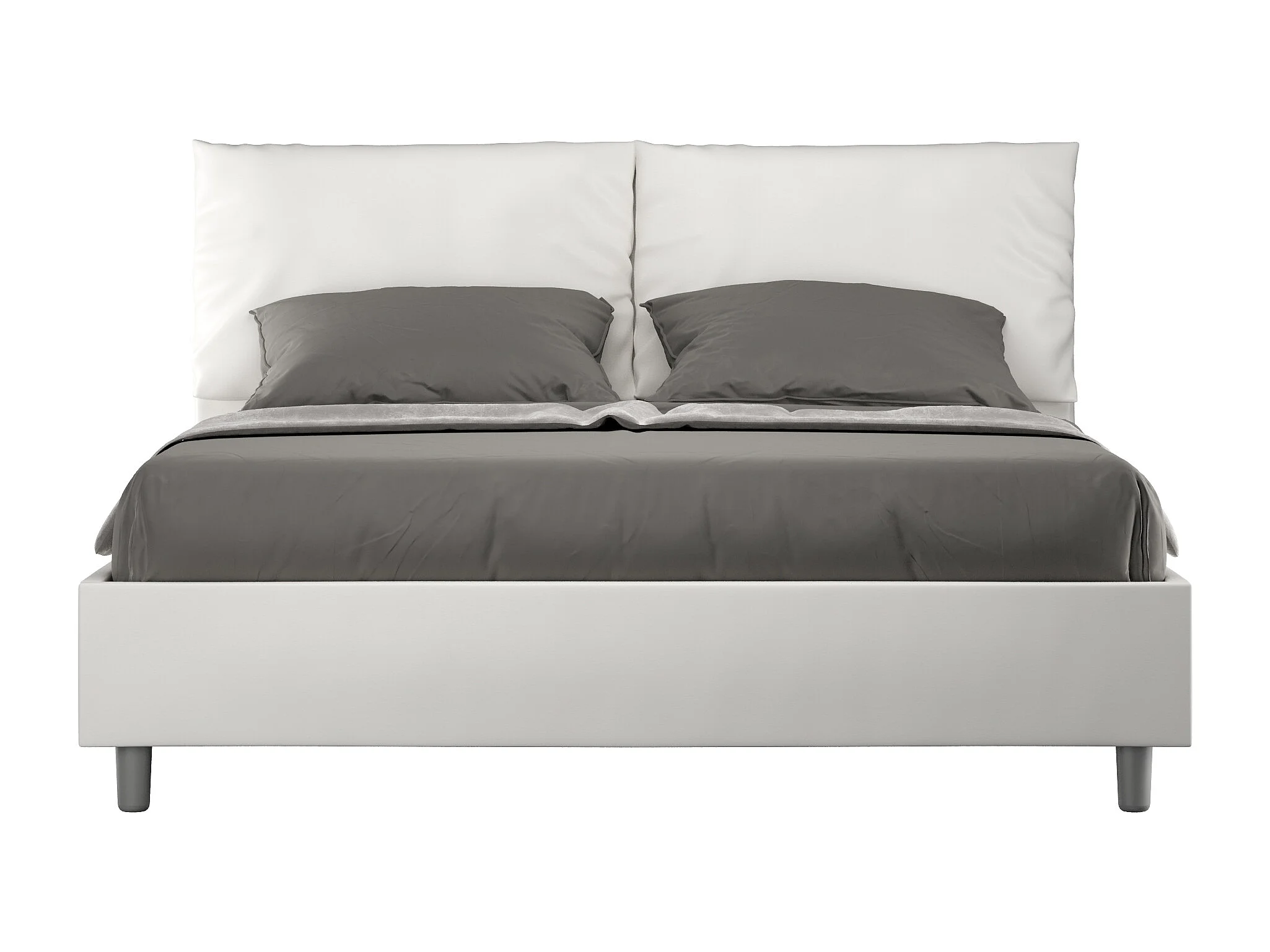 Lit coffre double surélevé Antea capitonné blanc 160x190