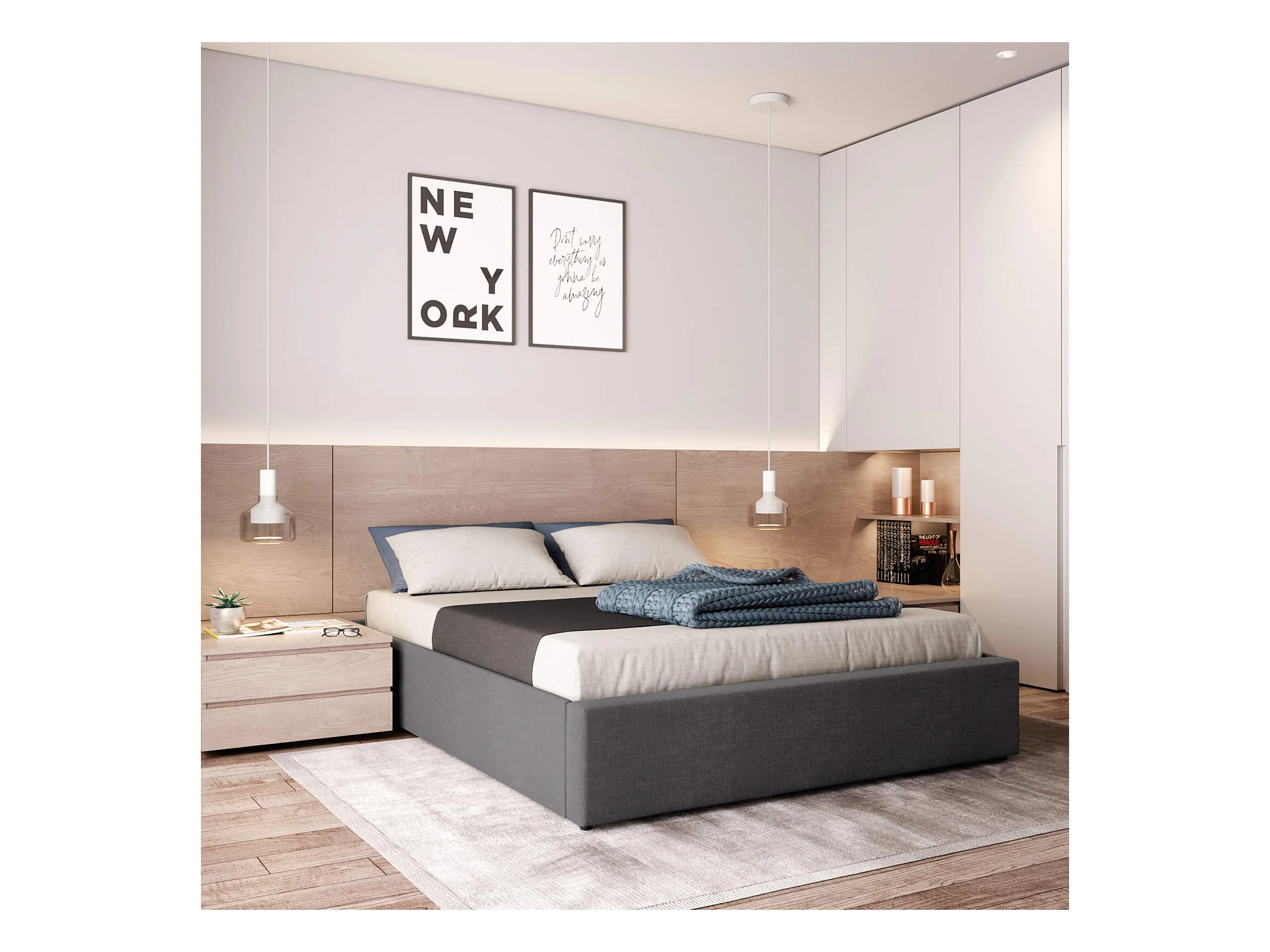 Lit coffre en bois massif anthracite avec sommier à lattes 140x190 - LT17017