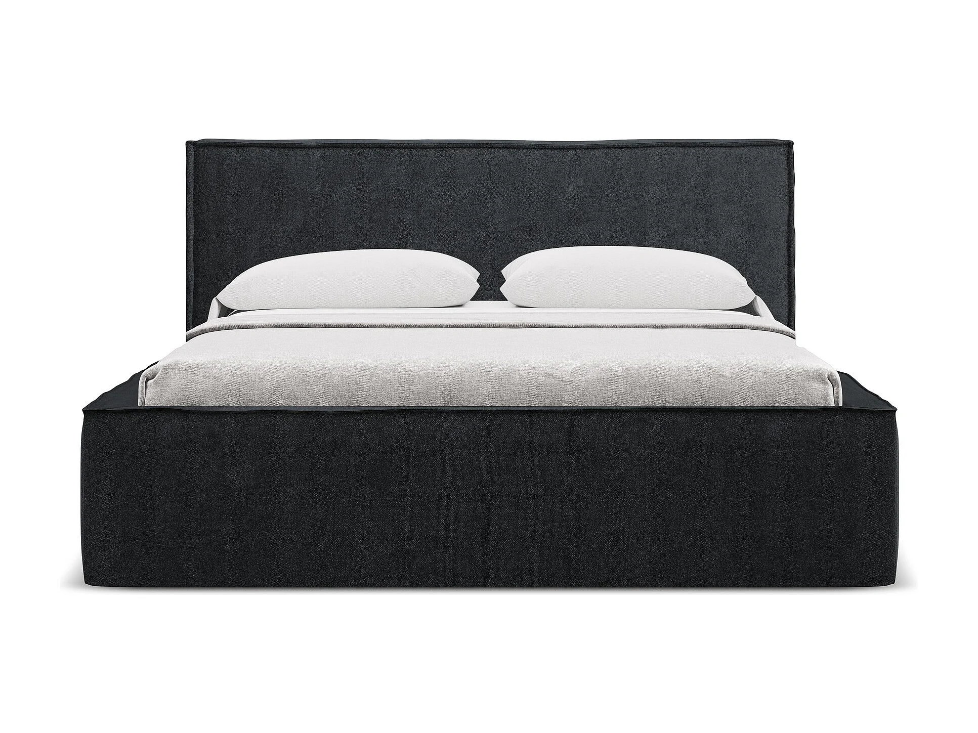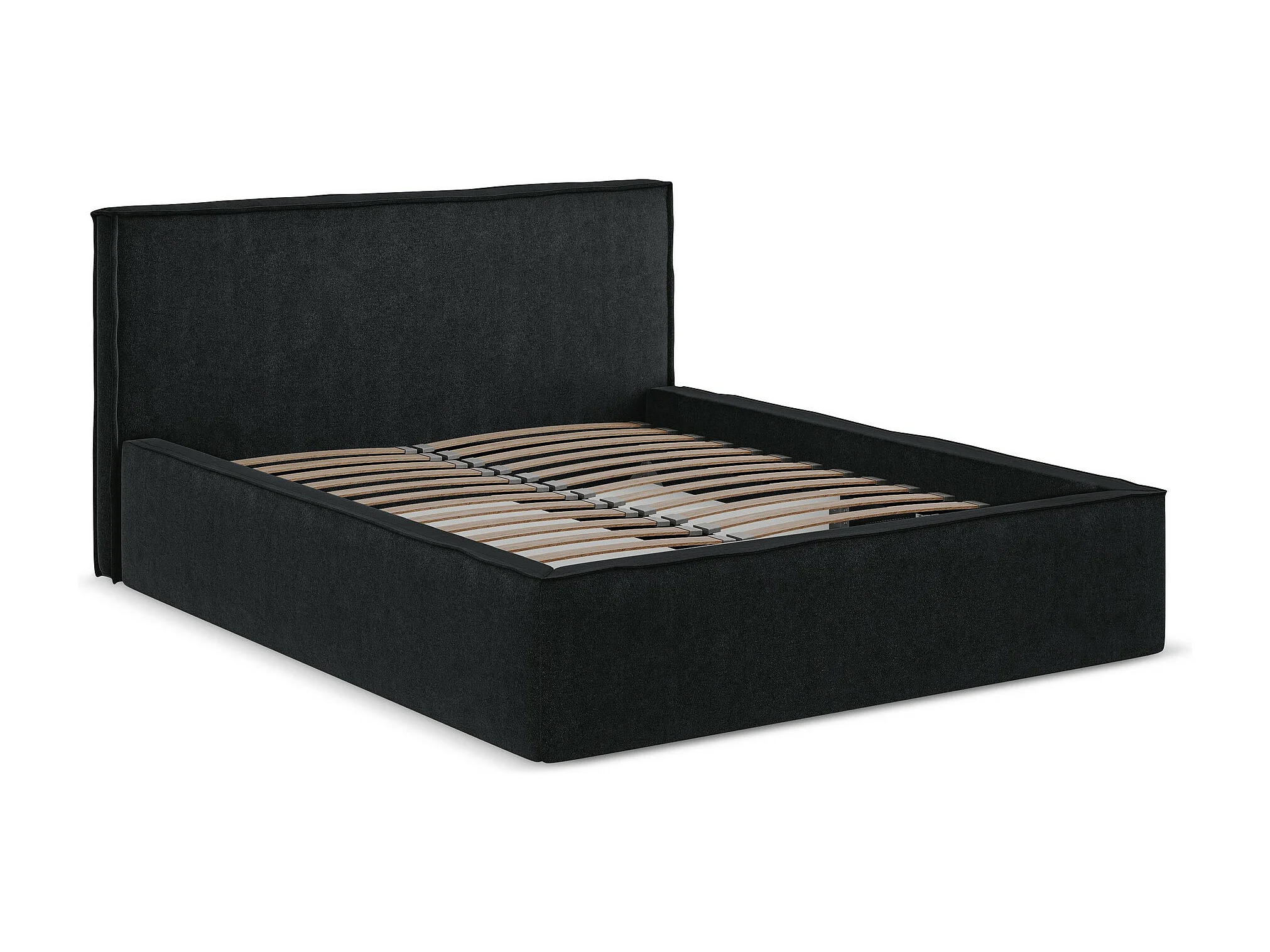 Lit coffre en tissu bouclette 140 x 200 - noir - ANANI
