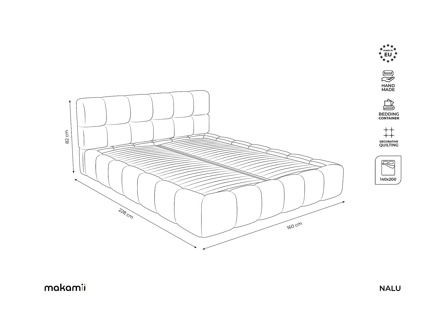 Lit coffre en tissu chenille 140 x 200 - noir - NALU