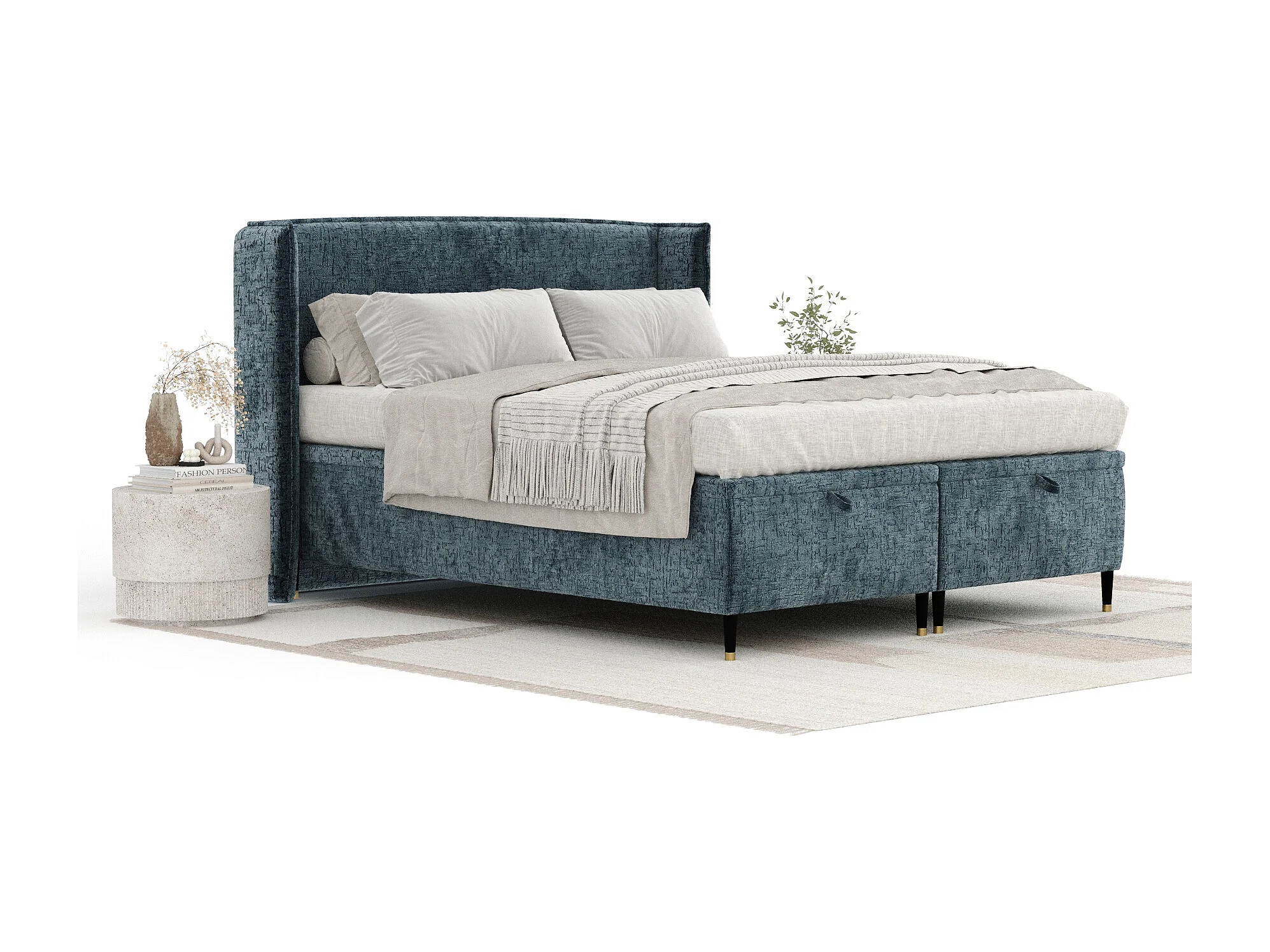 Lit coffre en tissu chenille Ritual - 140 x 200 cm - bleu