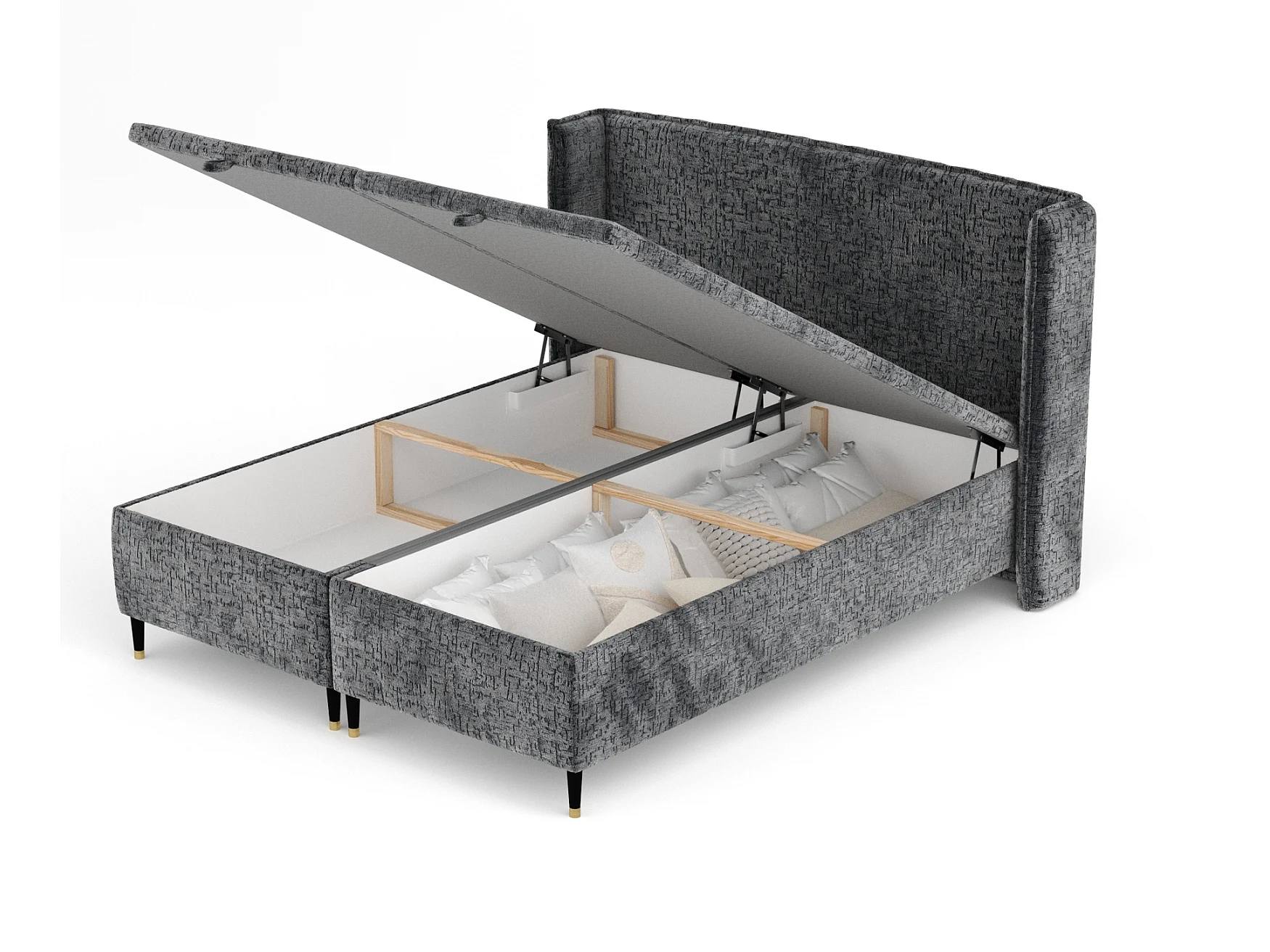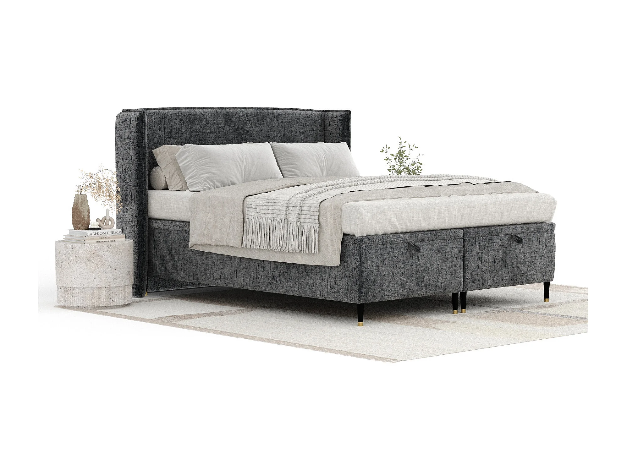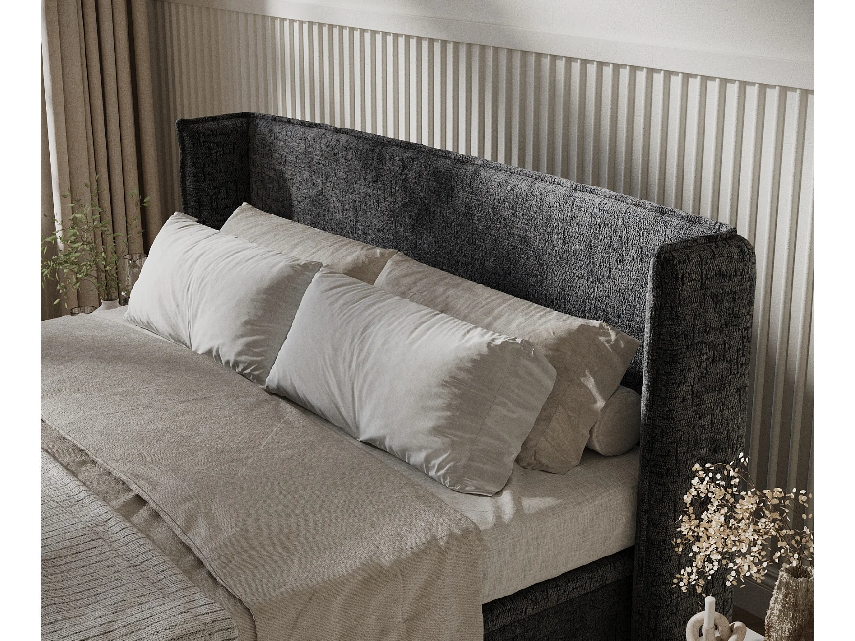 Lit coffre en tissu chenille Ritual - 180 x 200 cm - anthracite