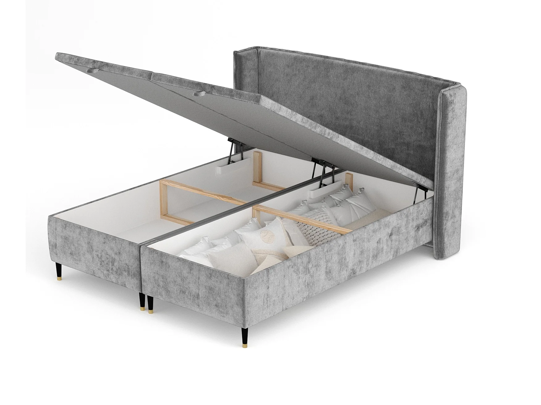 Lit coffre en tissu chenille Ritual - 180 x 200 cm - gris