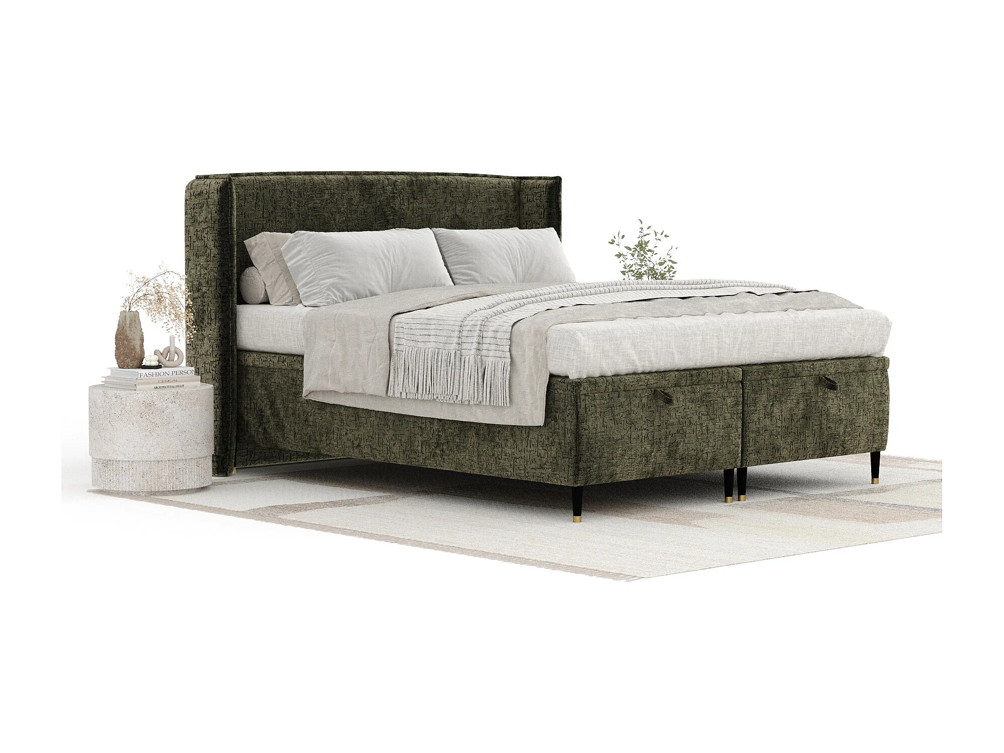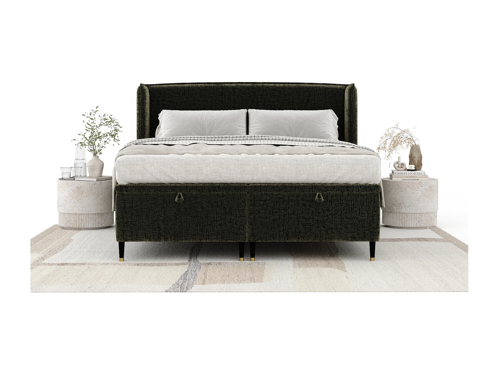 Lit coffre en tissu chenille Ritual - 180 x 200 cm - vert olive