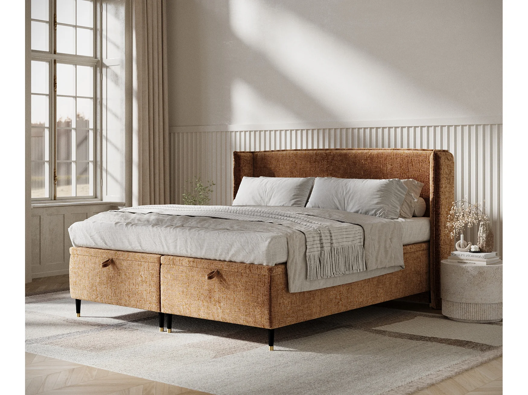 Lit coffre en tissu chenille Ritual - 200 x 200 cm - couleur cuivre
