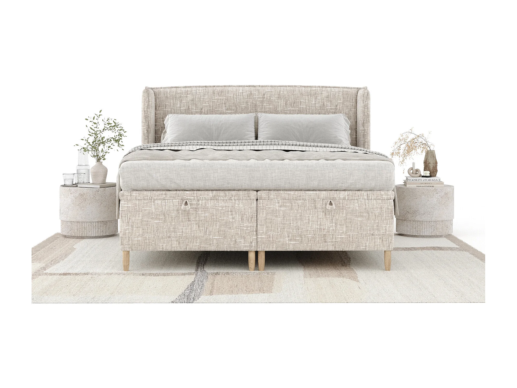 Lit coffre en toile tissée Ritual - 140 x 200 cm - creme