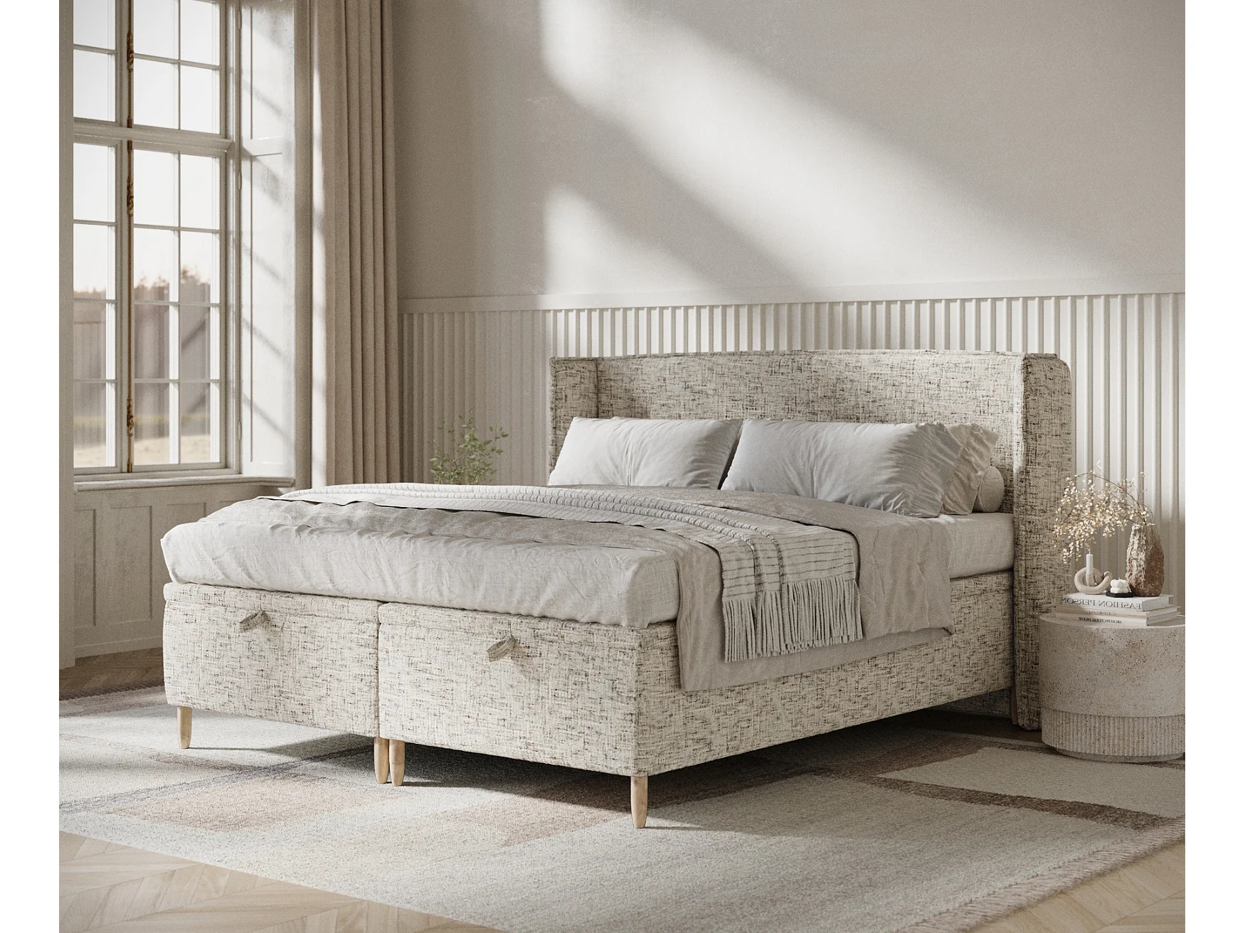 Lit coffre en toile tissée Ritual - 160 x 200 cm - beige mélangé