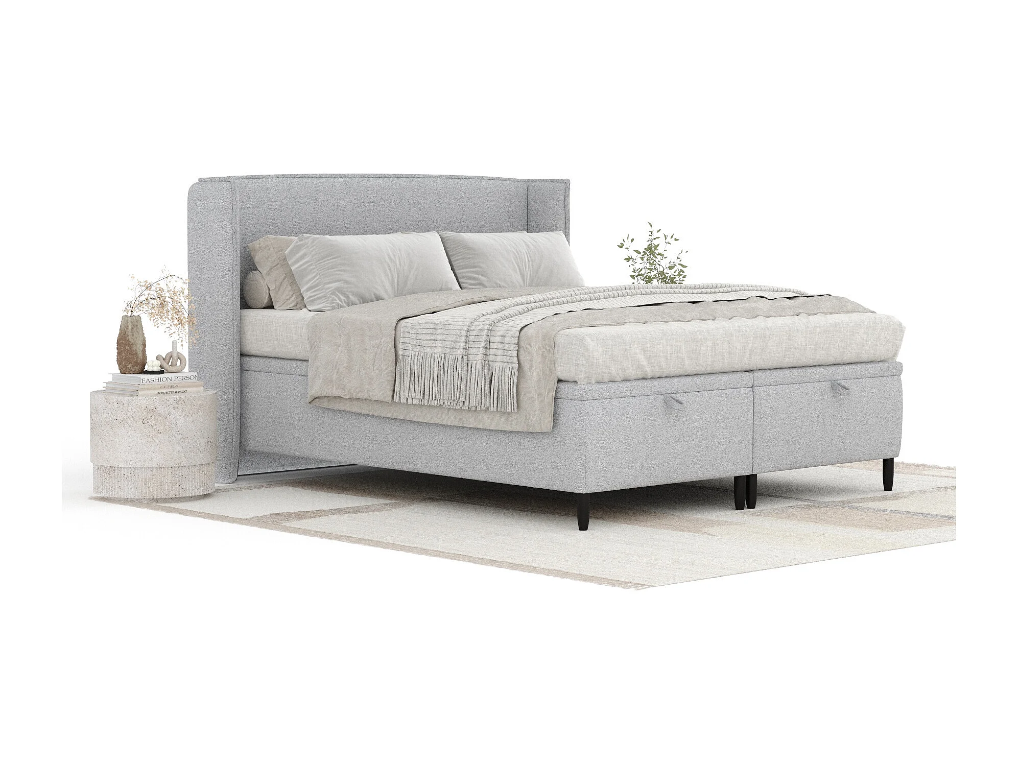 Lit coffre en toile tissée Ritual - 160 x 200 cm - gris clair