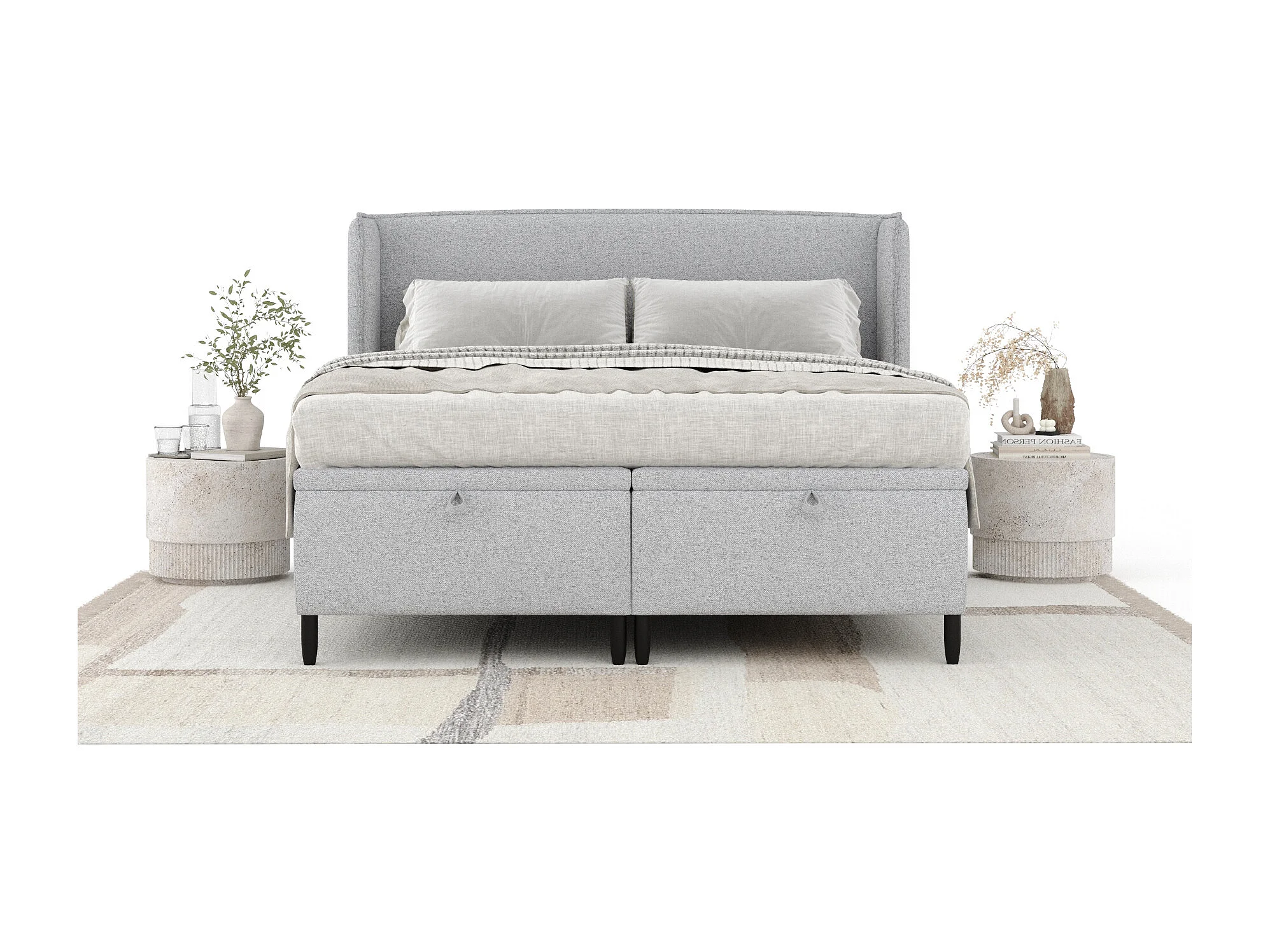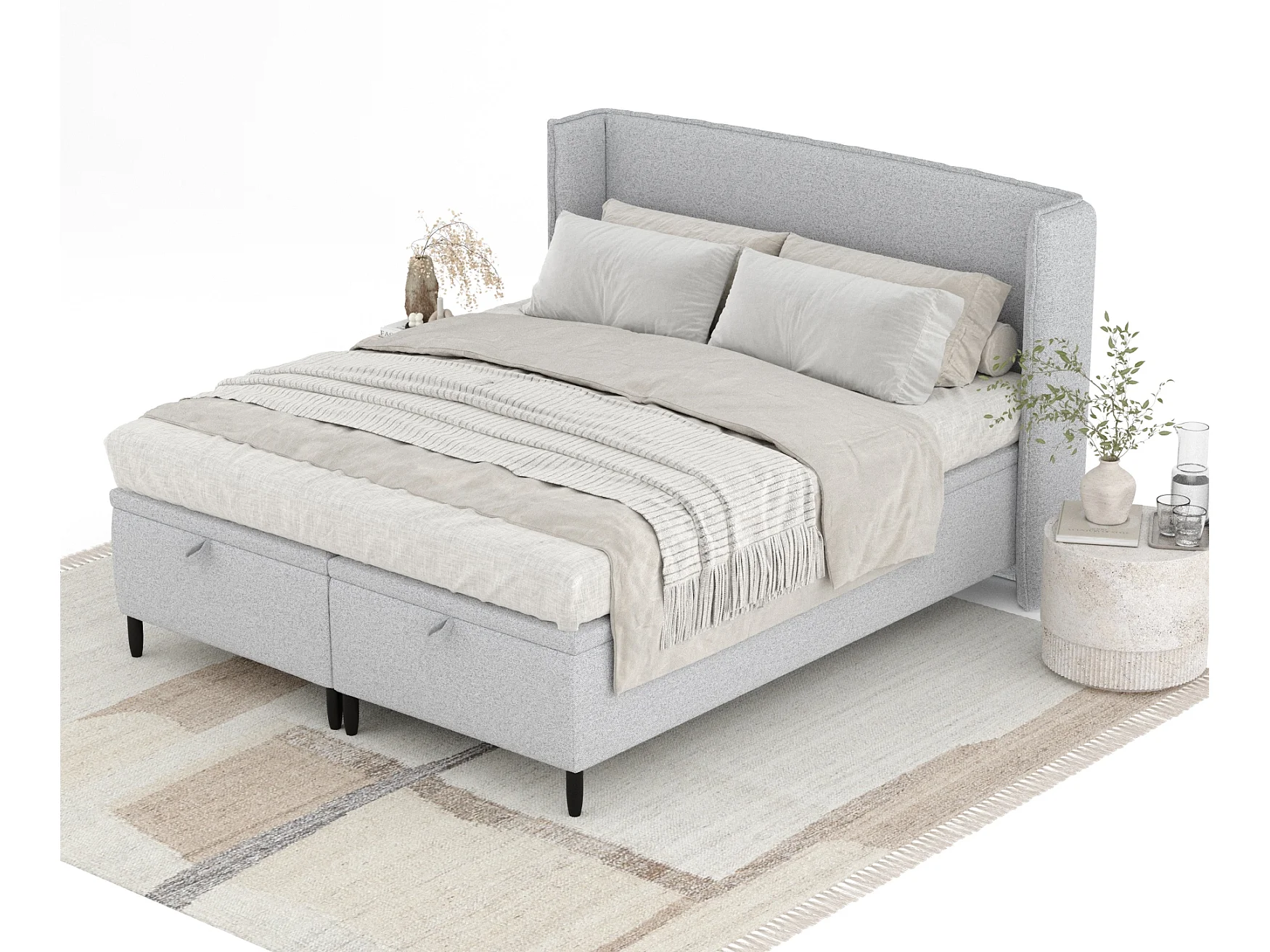 Lit coffre en toile tissée Ritual - 180 x 200 cm - gris clair