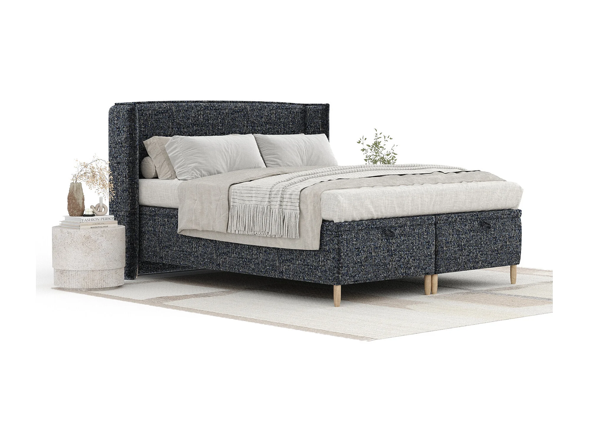 Lit coffre en toile tissée Ritual - 200 x 200 cm - bleu marine