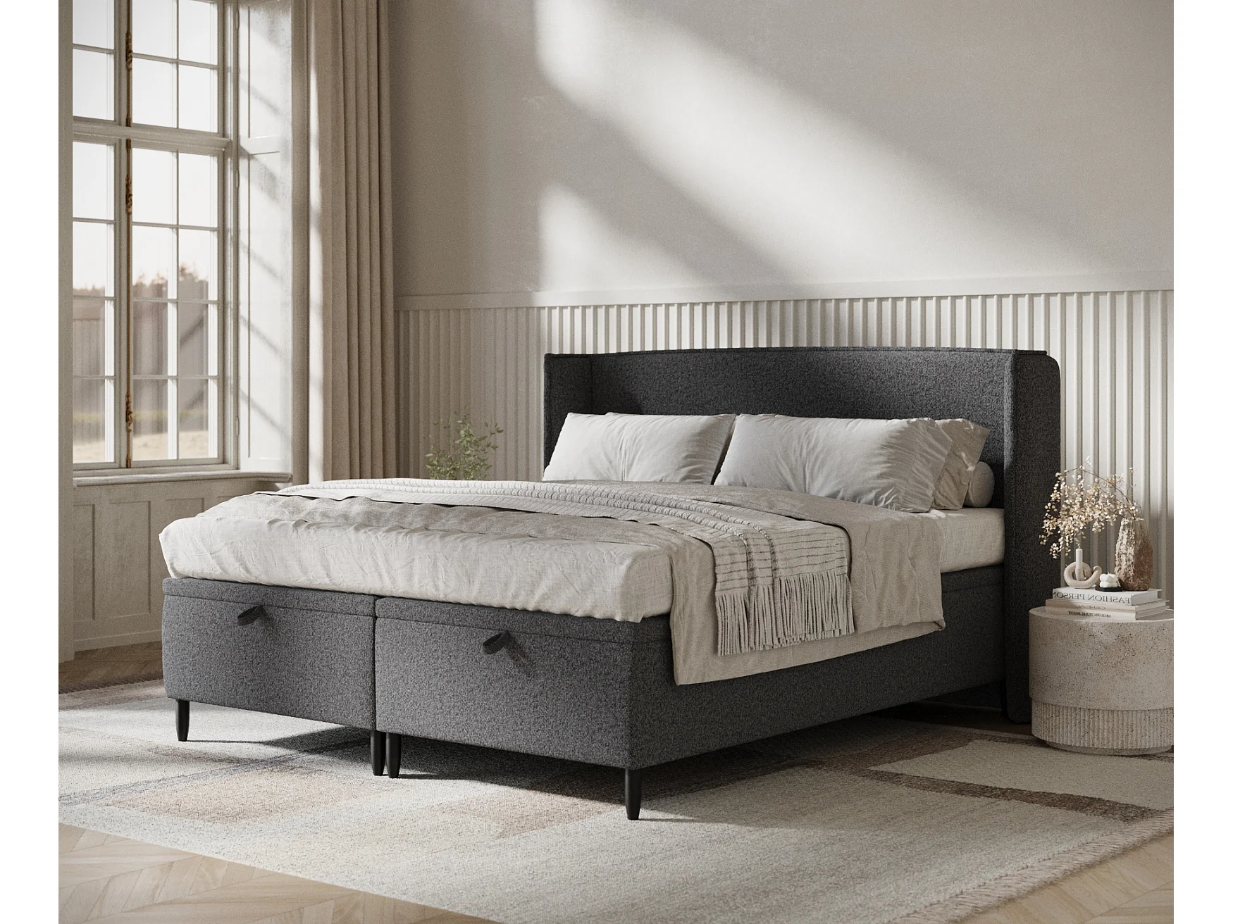 Lit coffre en toile tissée Ritual - 200 x 200 cm - noir