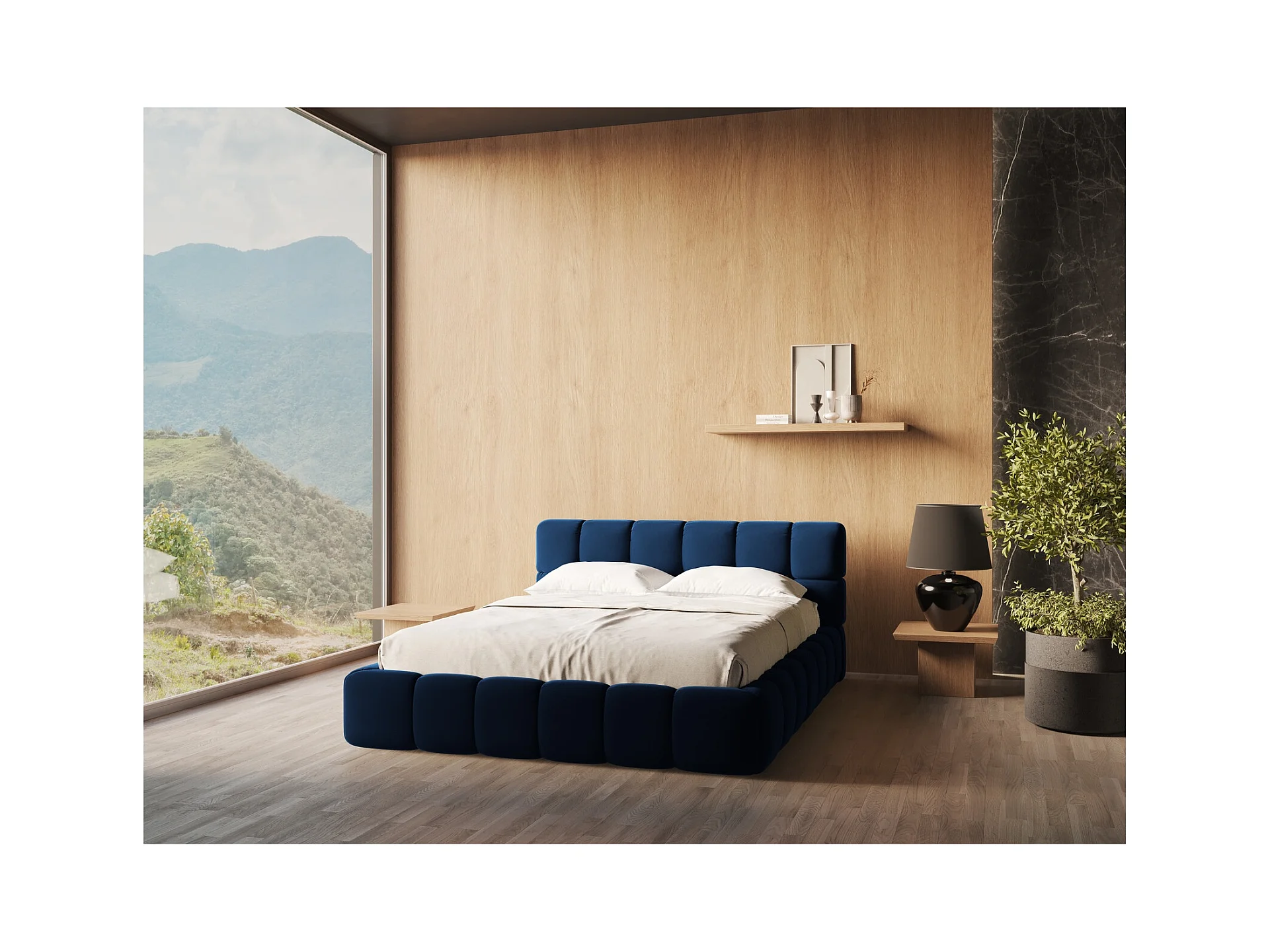 Lit coffre en velours 160 x 200 - bleu royal - NALU