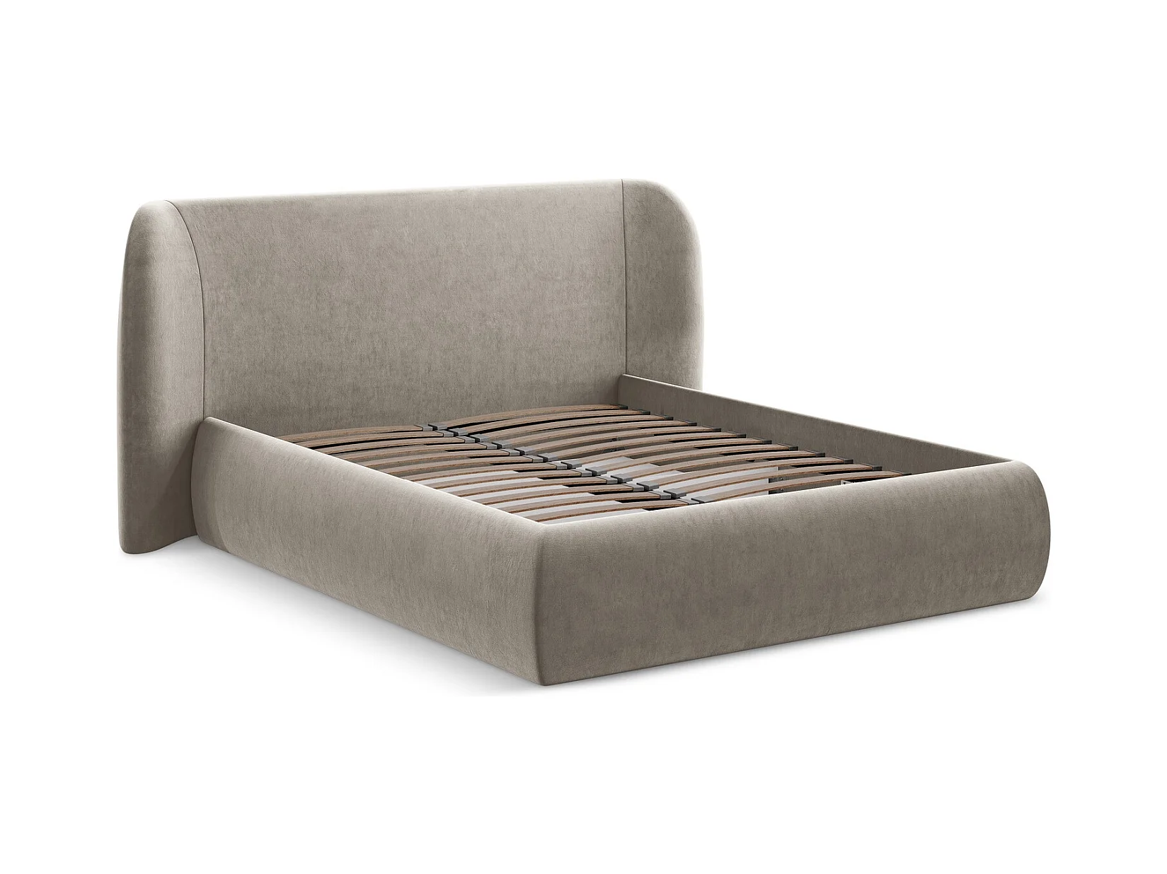 Lit coffre en velours 160 x 200 - taupe - HAUKE
