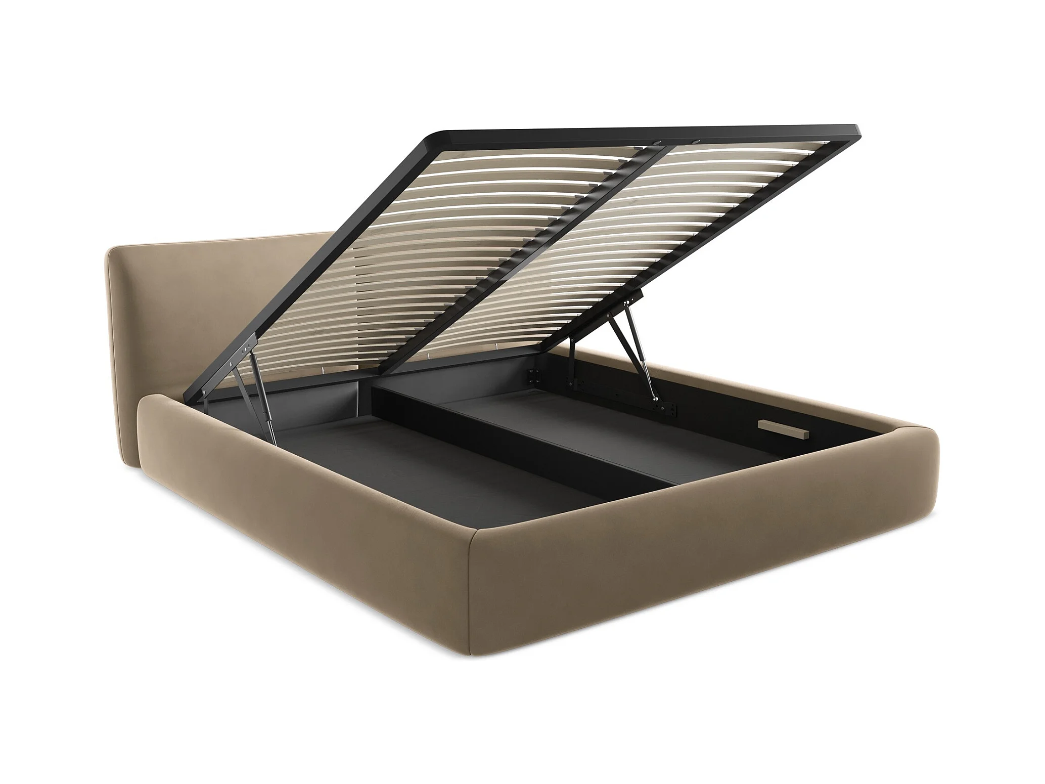 Lit coffre en velours 180 x 200 - beige clair - HOKU