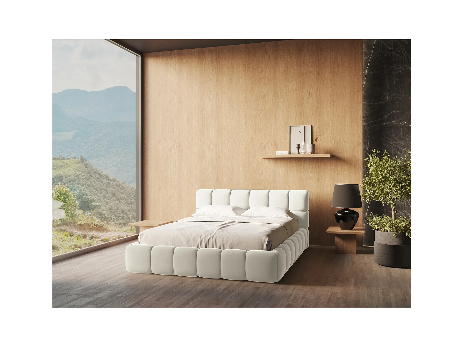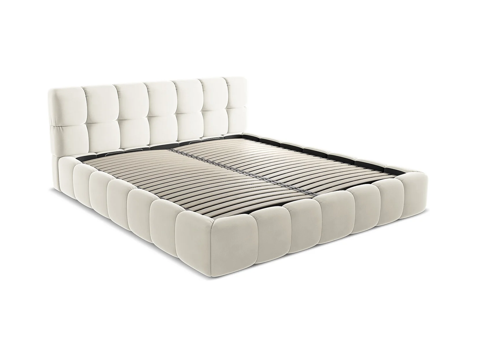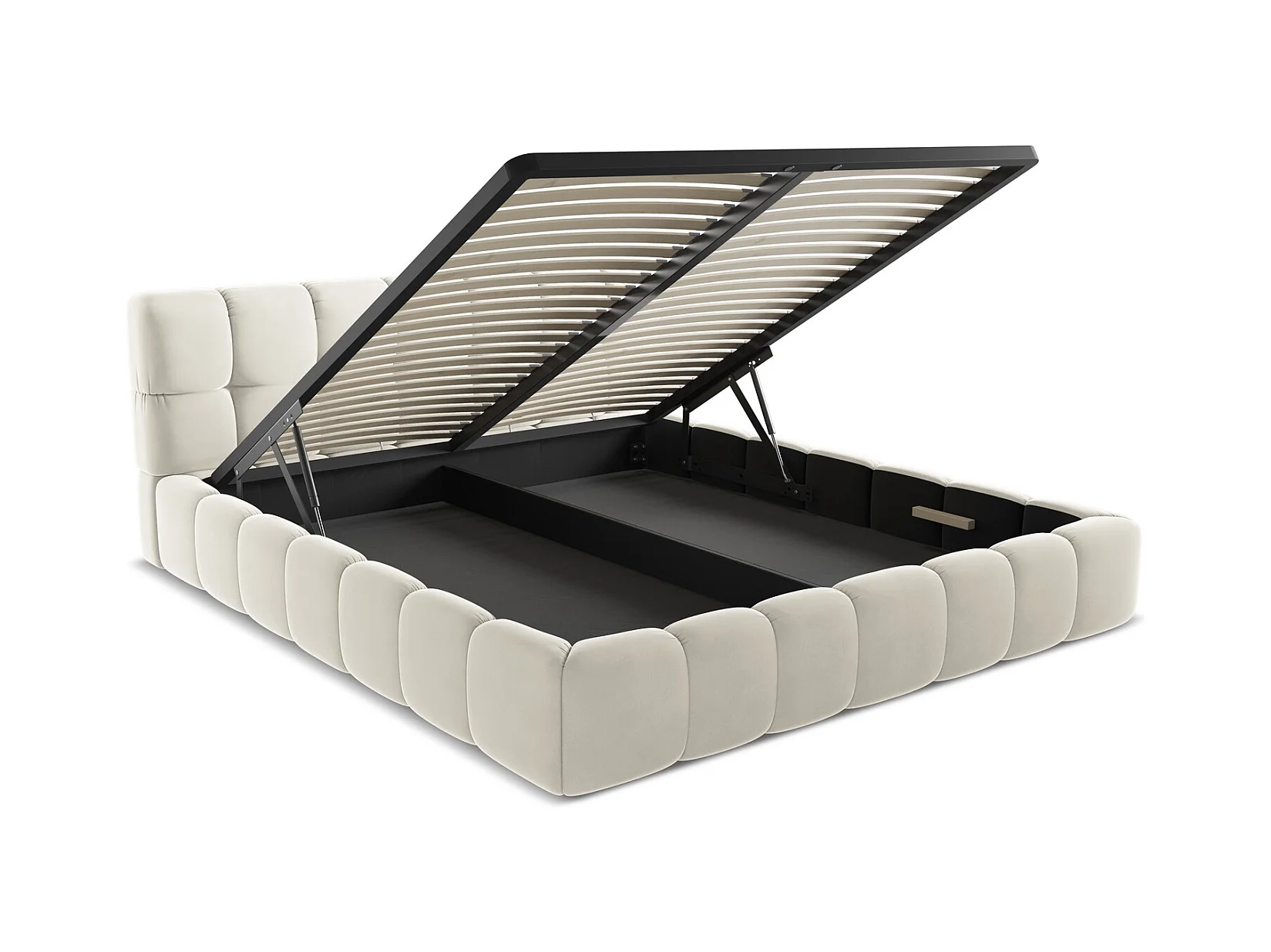 Lit coffre en velours 180 x 200 - beige clair - NALU