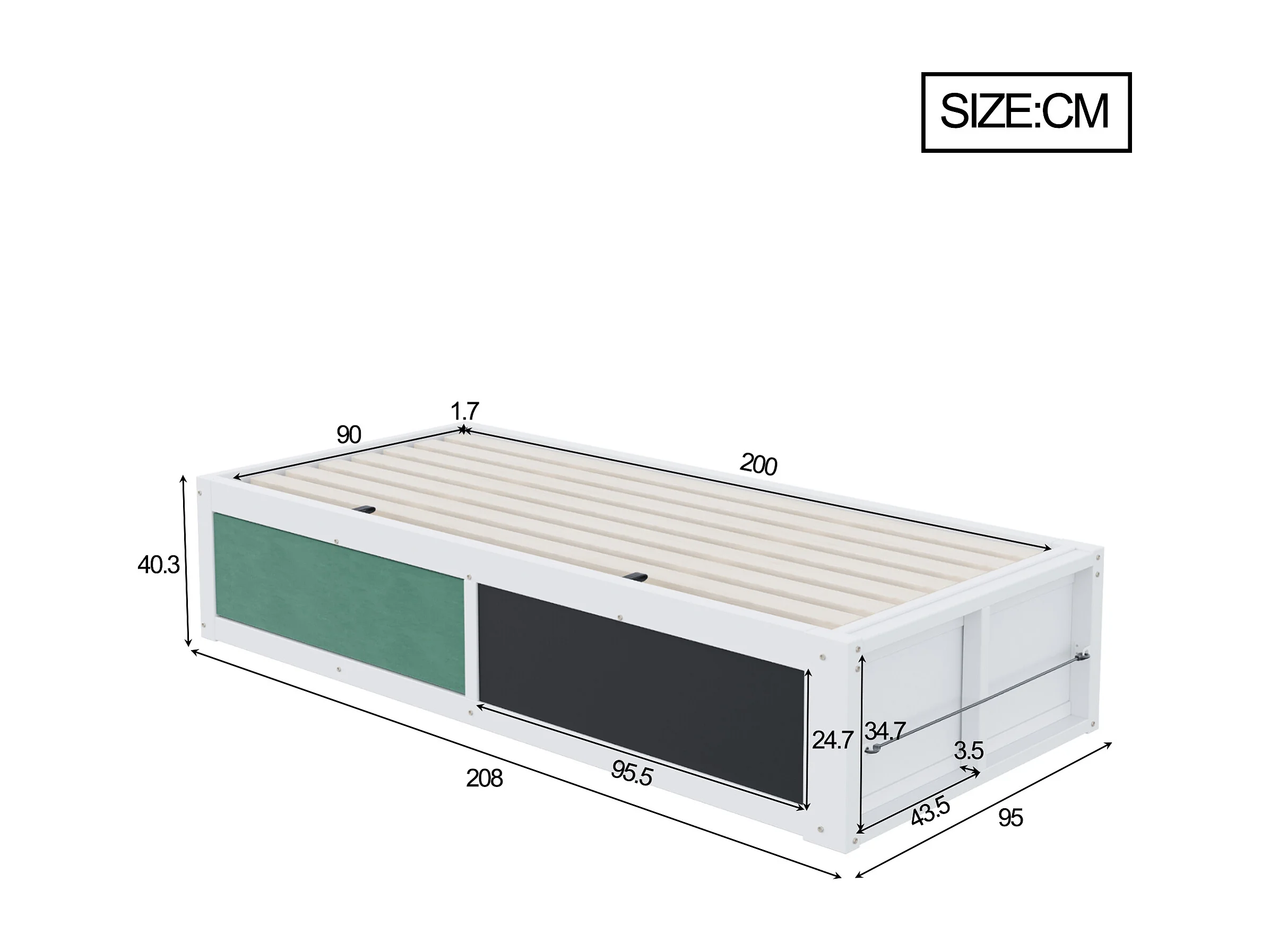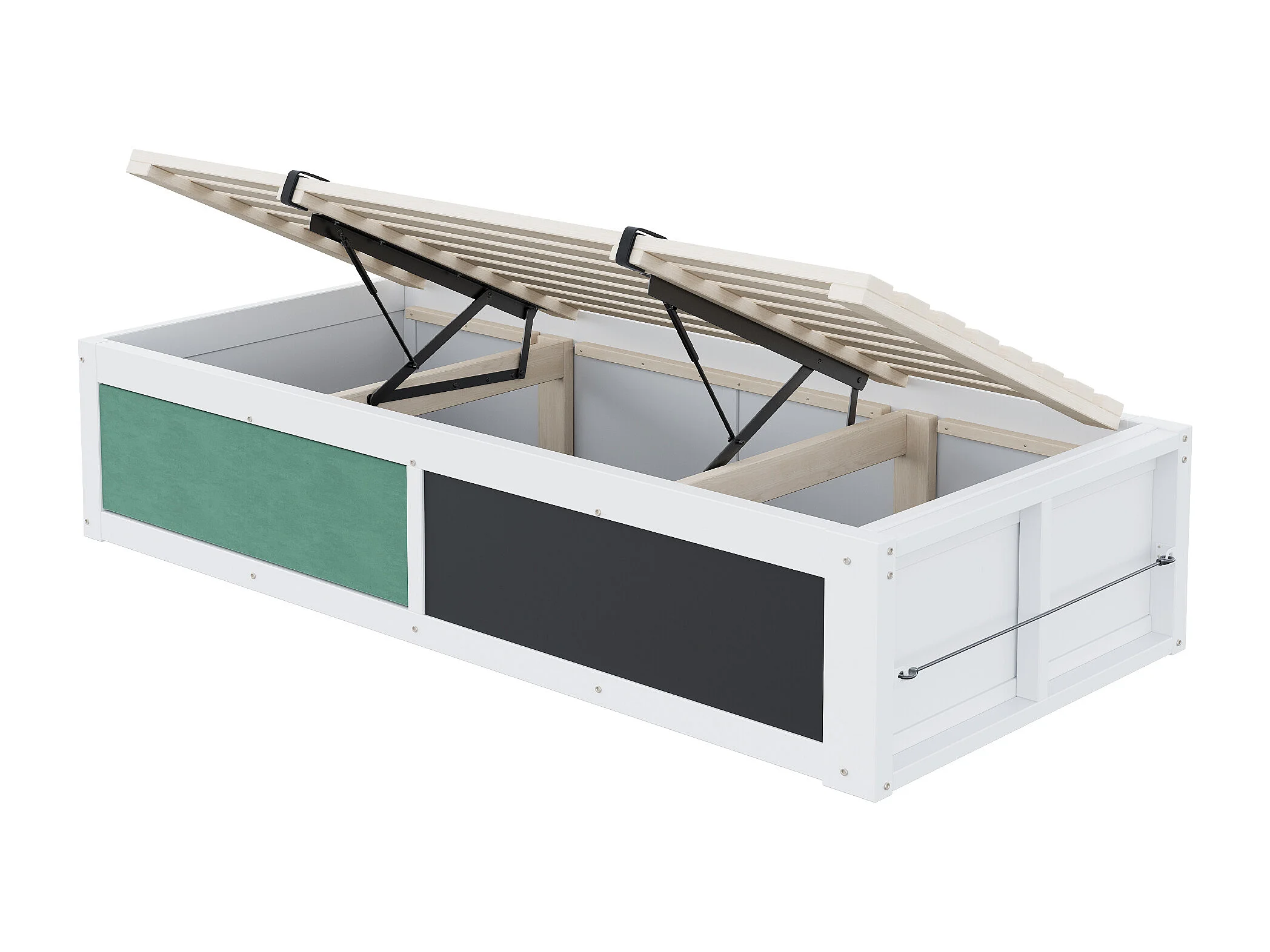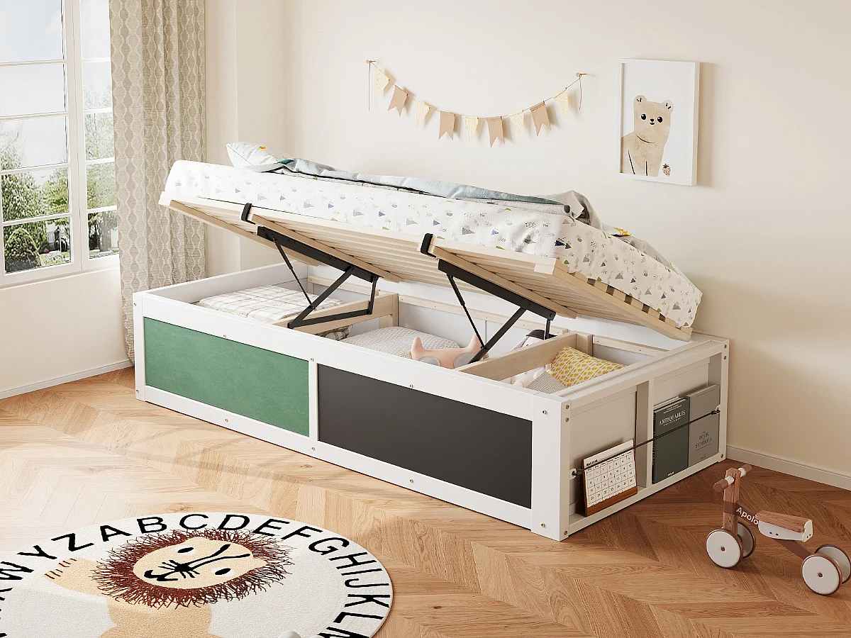 Lit coffre enfant 90x200 cm avec tablette d'écriture - Sans de tête de lit - Blanc