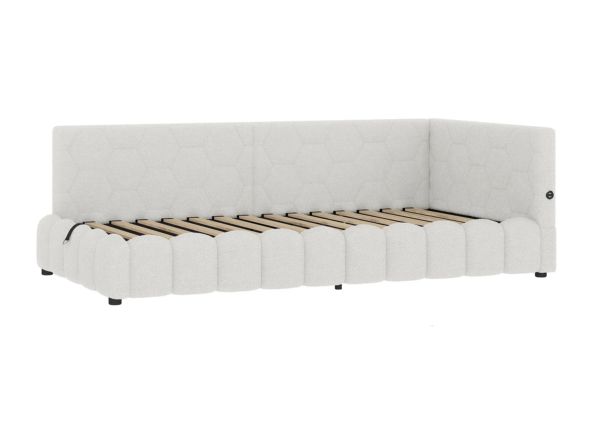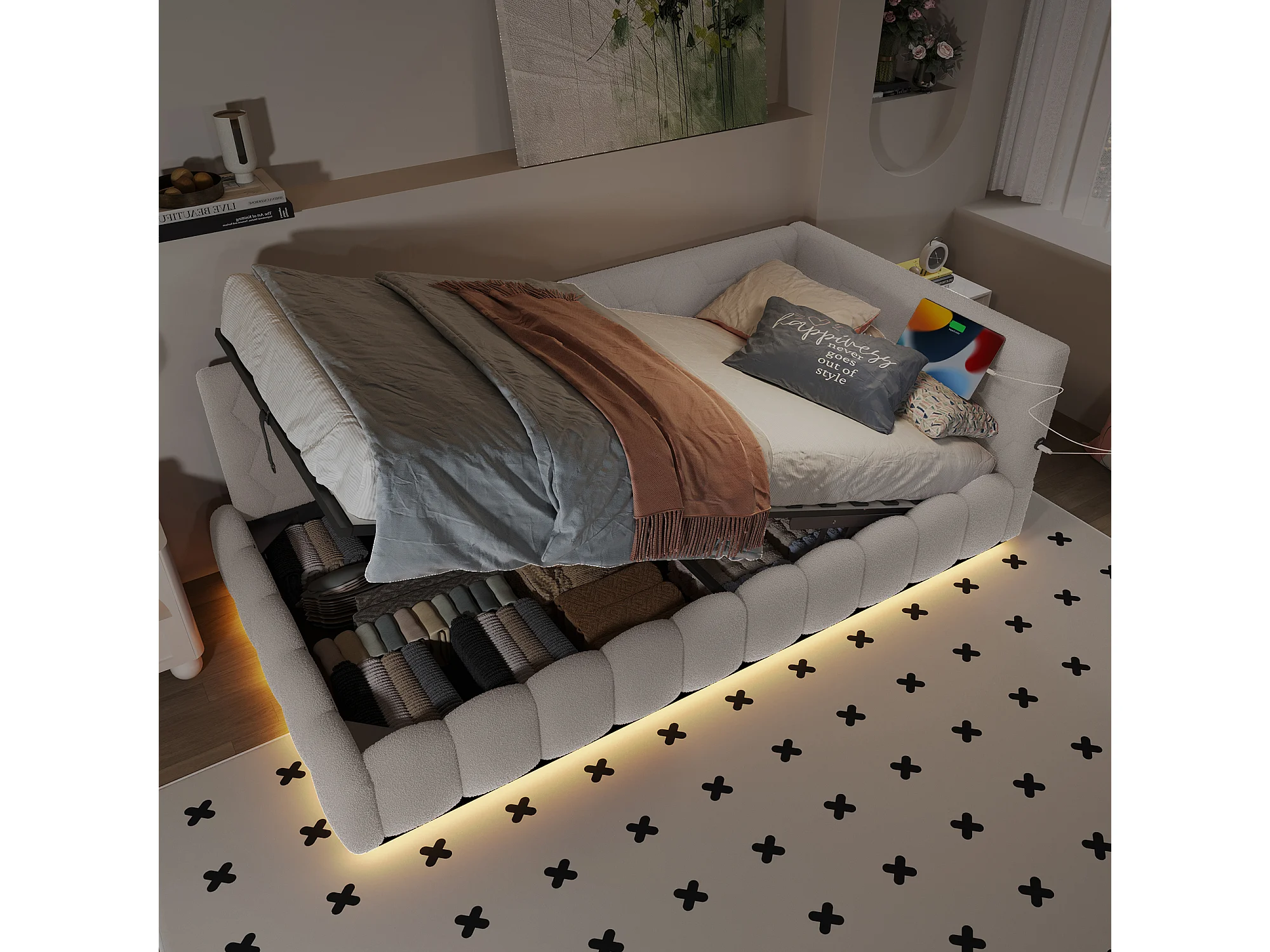 lit coffre enfant 90x200cm avec LED et USB Type-C,Canapé-lit en imitation laine blanc, sans matelas