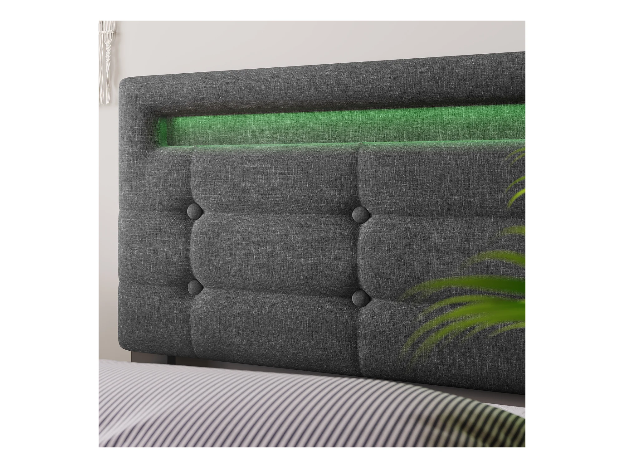 Lit coffre 140x200cm en lin avec LED + 2 tiroirs + sommier à lattes - Gris