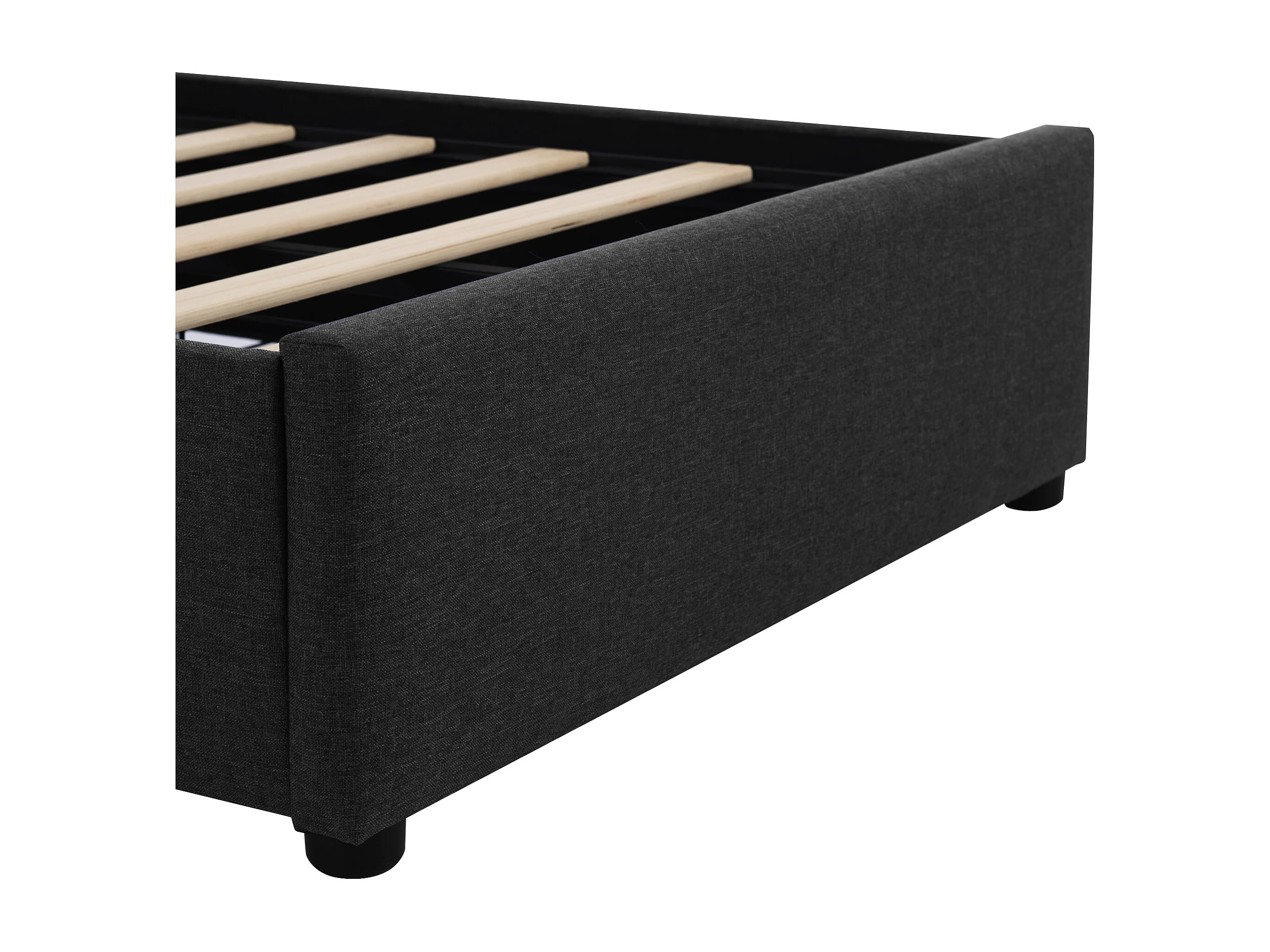 Lit coffre 90x200cm en lin avec LED + 2 tiroirs + sommier à lattes - Noir
