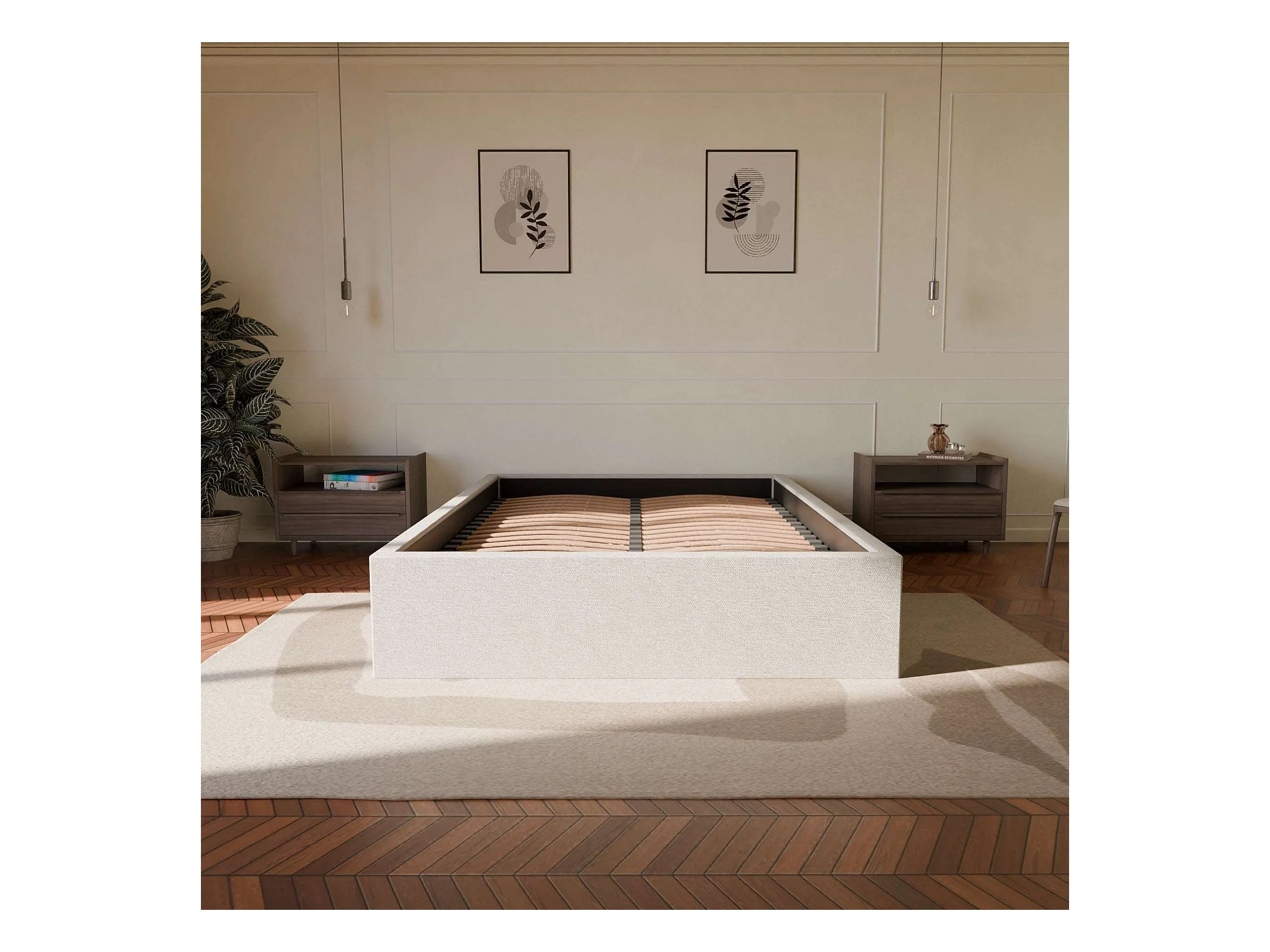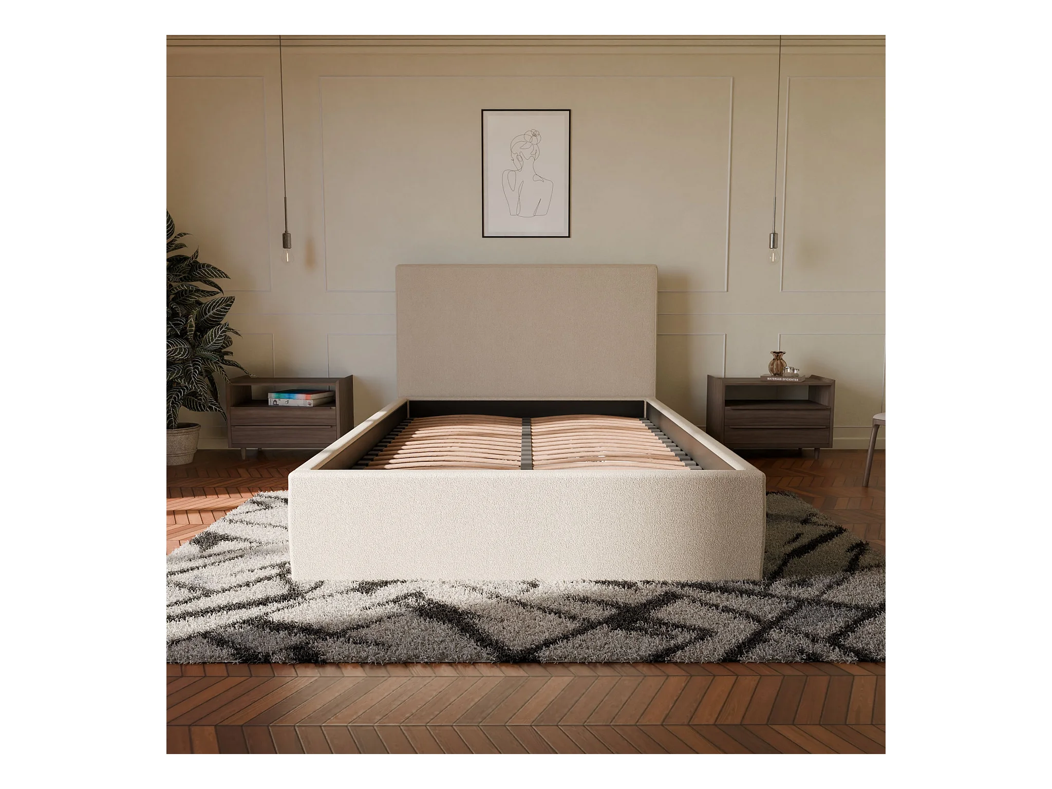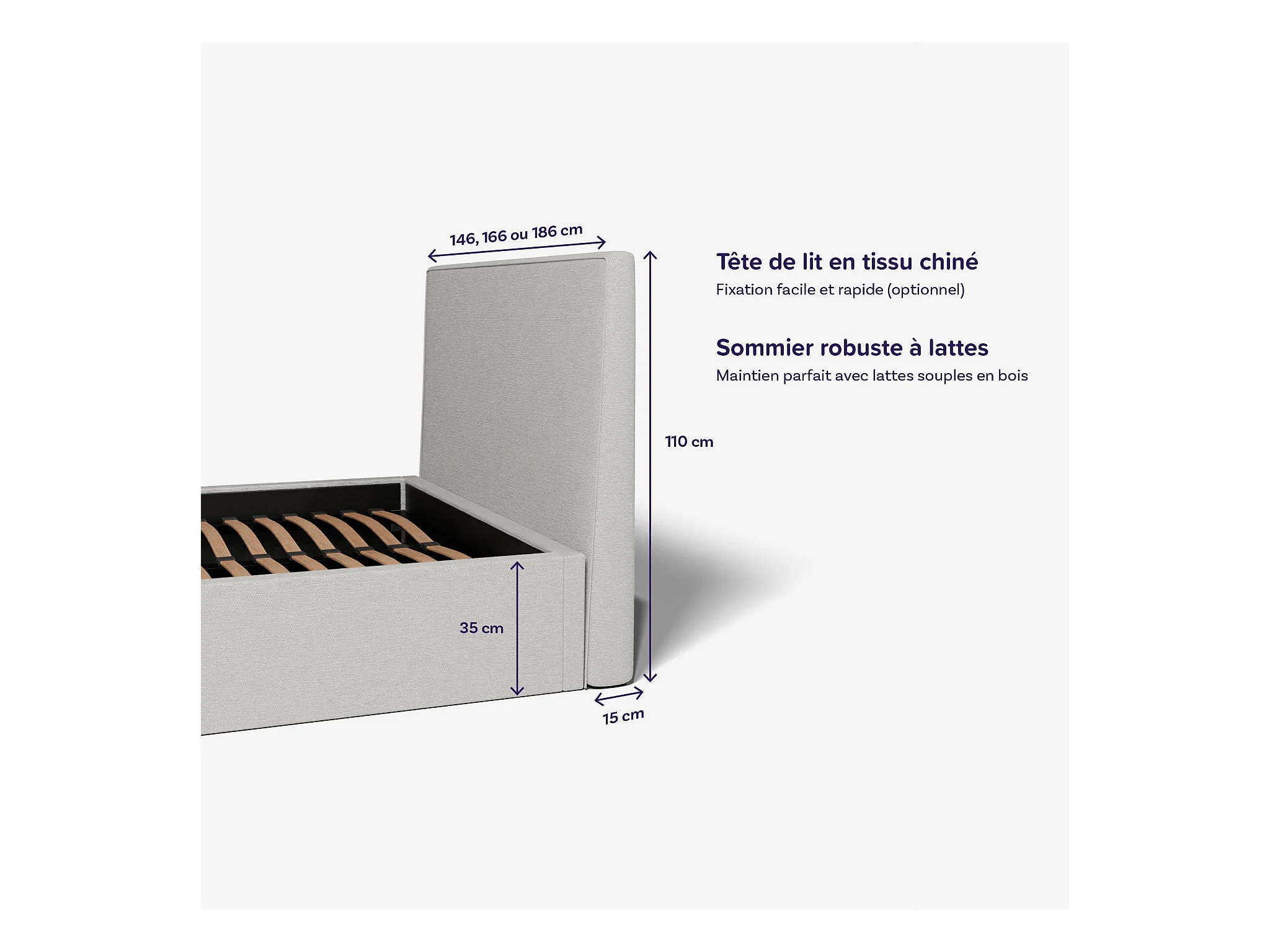 Lit coffre et tissu chiné blanc 160x200 cm