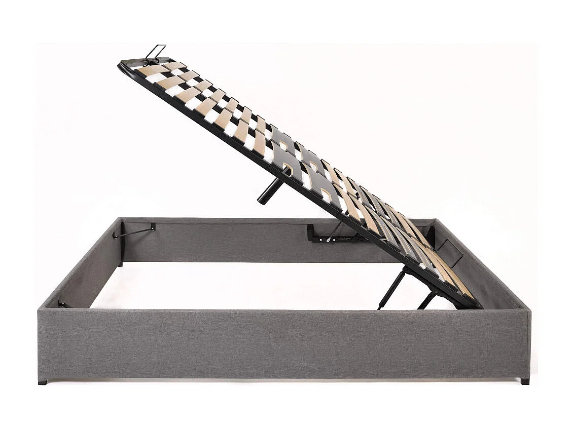 Lit coffre Savio - 160x200 - Tissu déco gris clair - 36 lattes bois - Gain de place