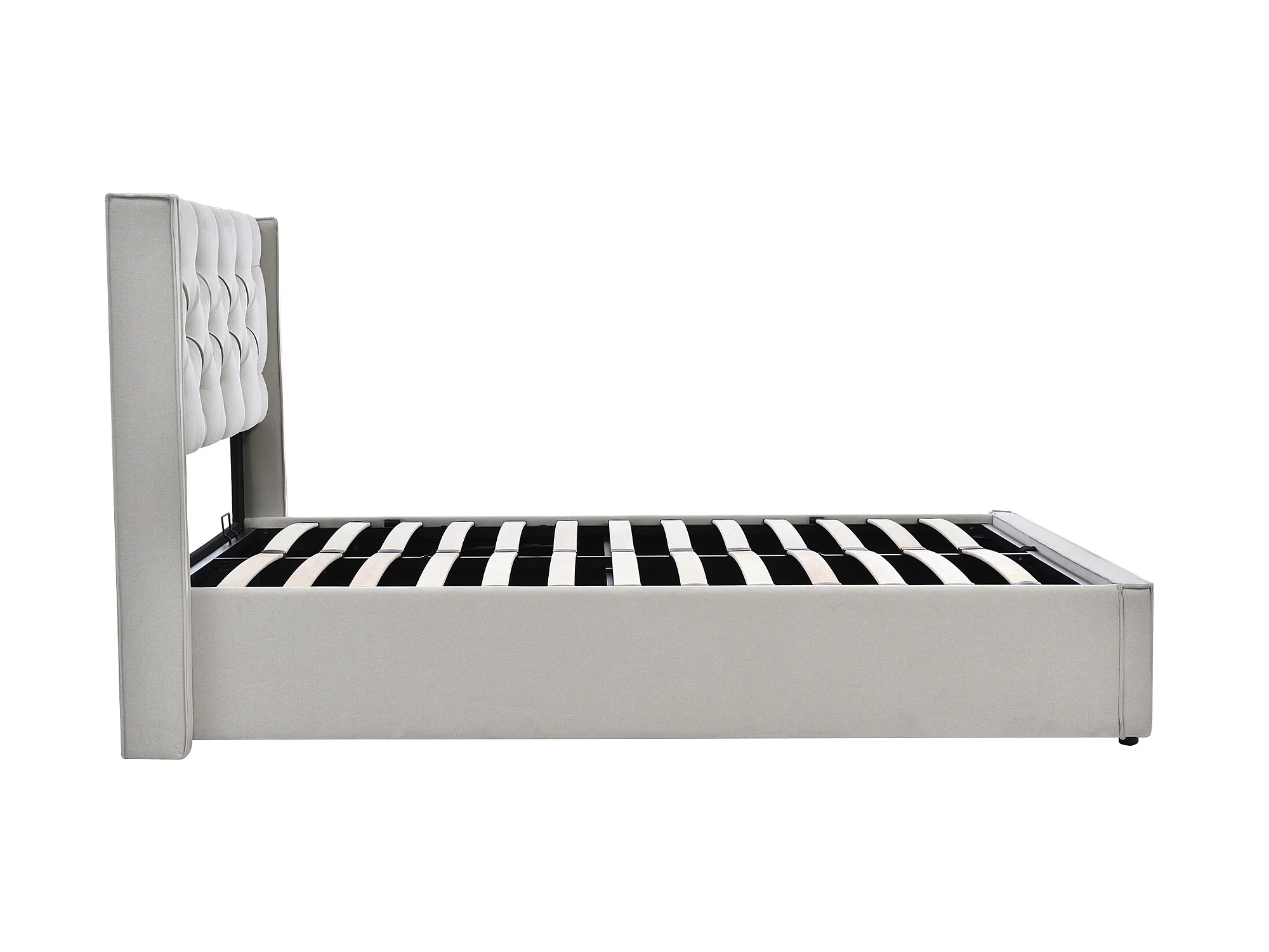 Lit coffre - Gris - 140x200 cm en tissu capitonné - Sweiko