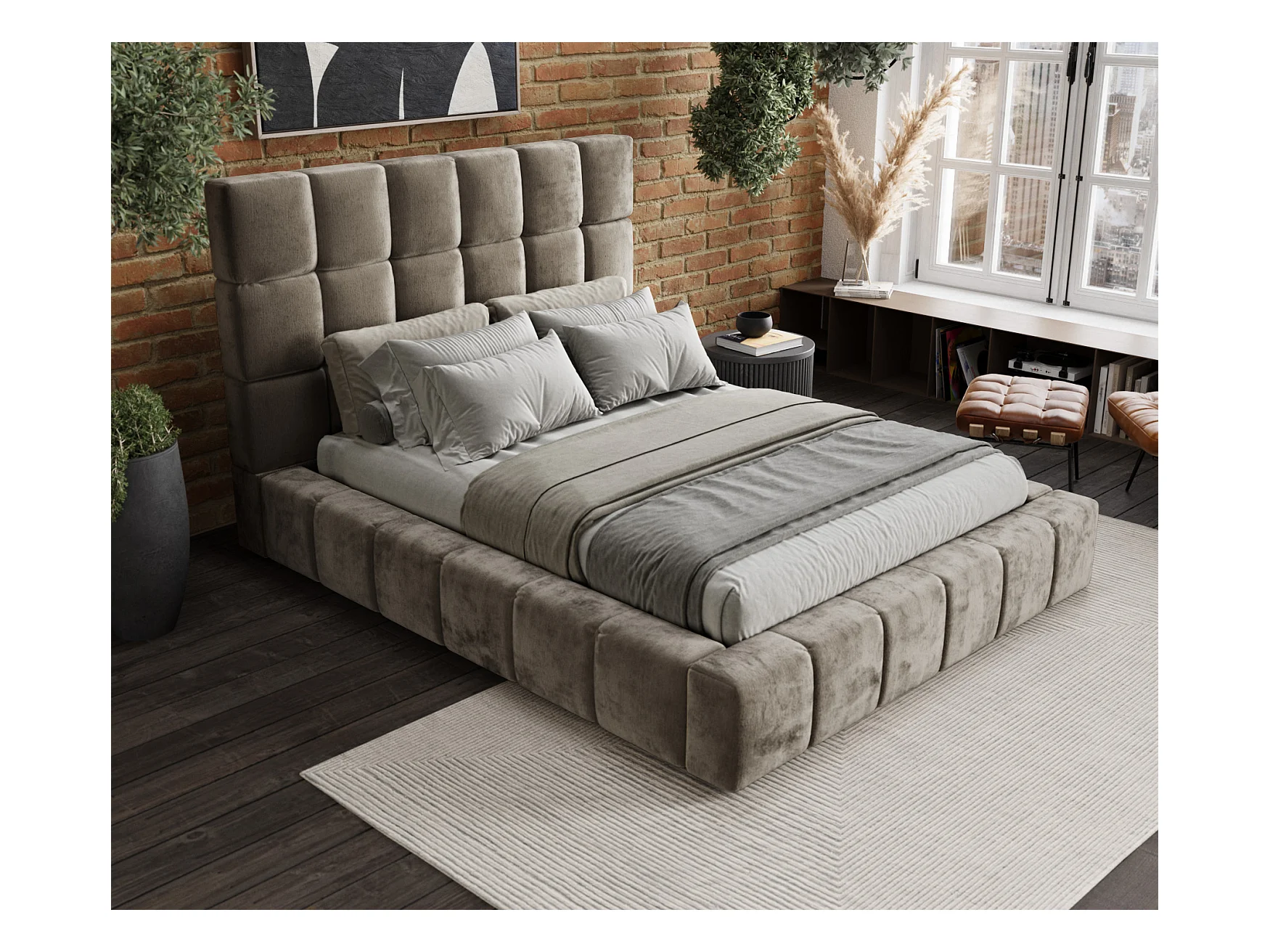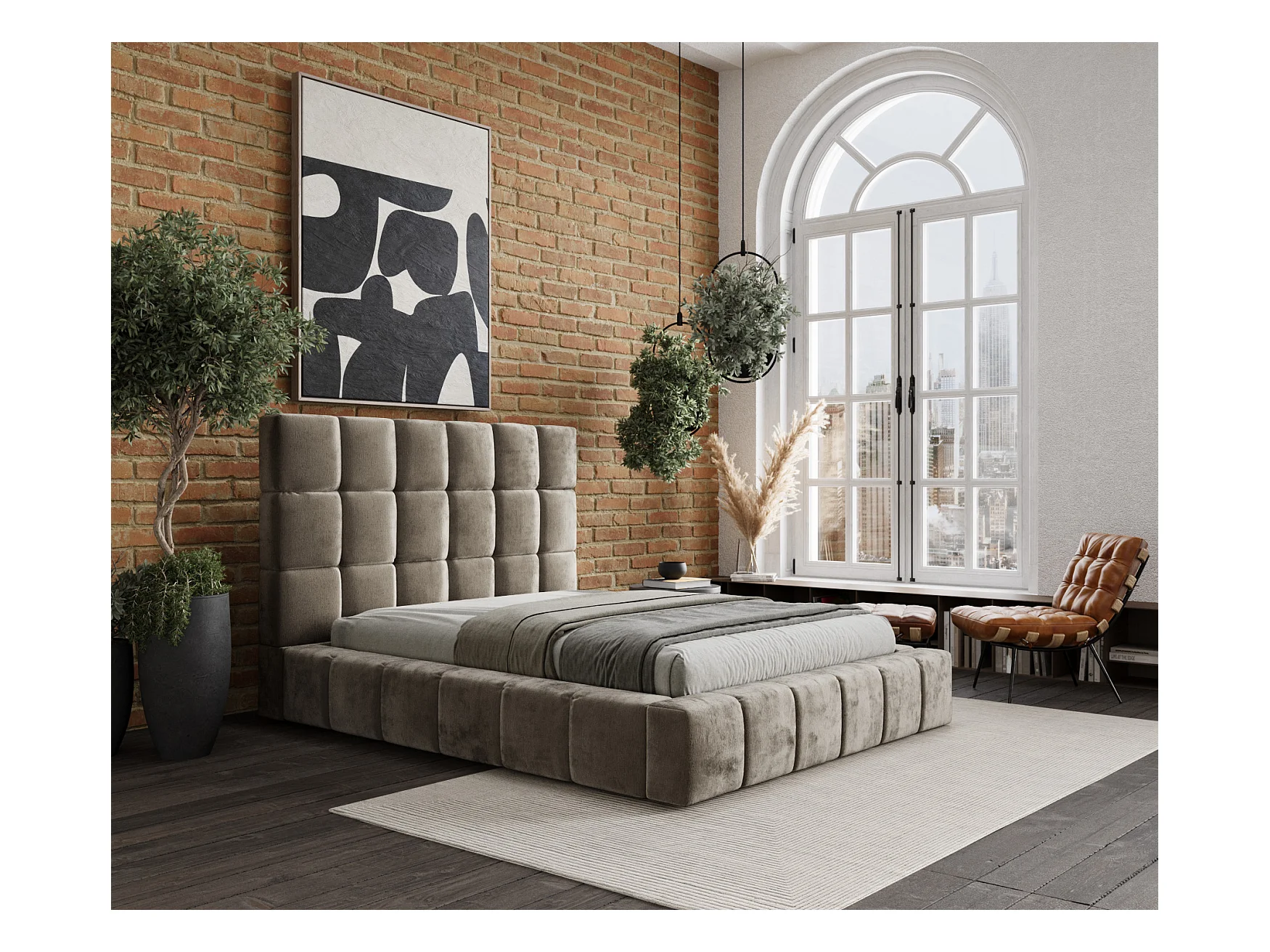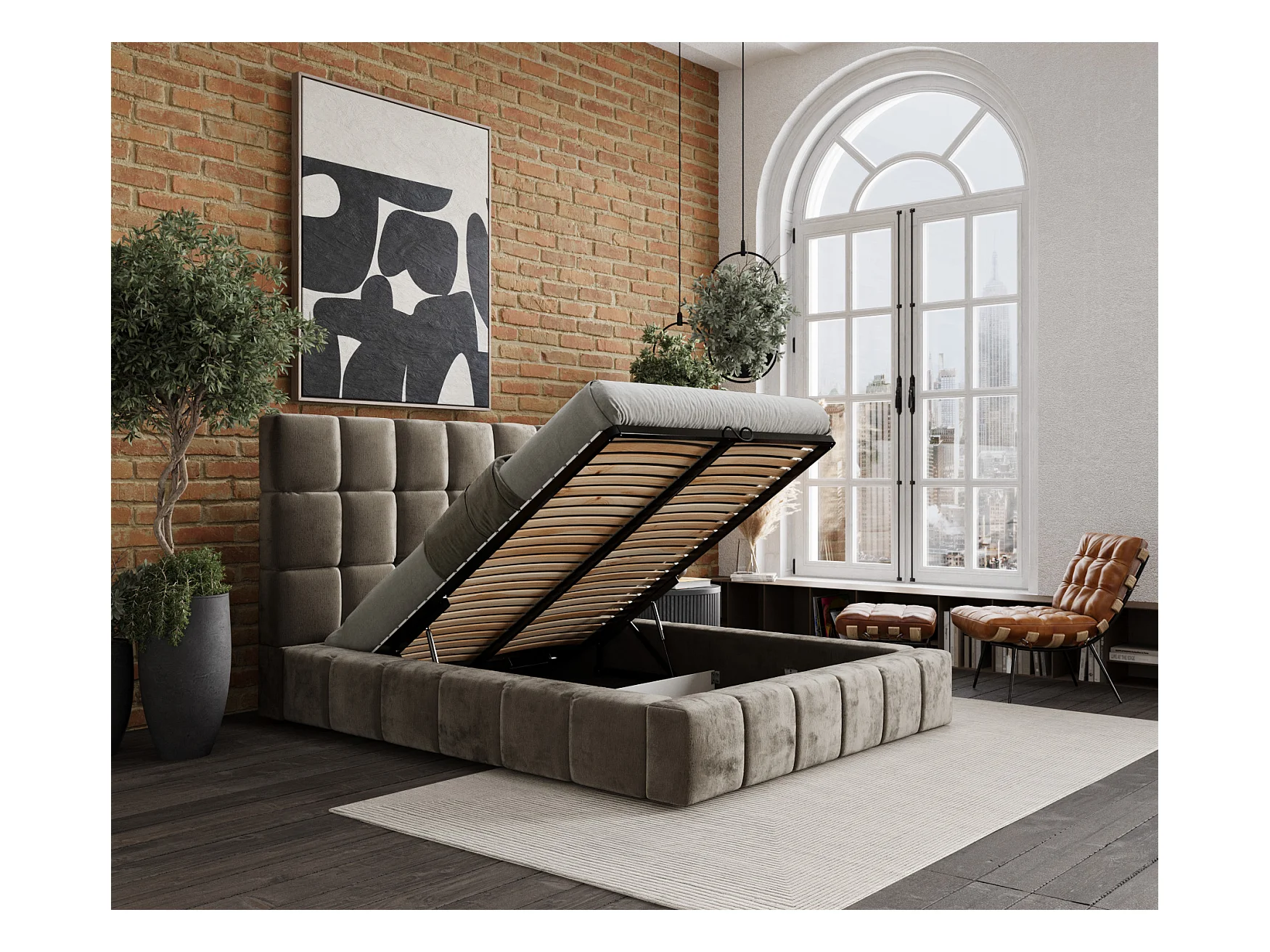 Lit coffre Kendal Tres - 180 x 200 cm - chenille - beige