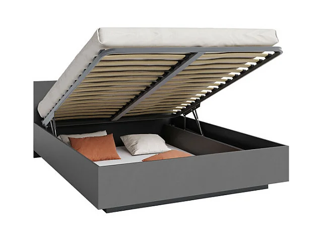 Lit coffre Lima 160 x 200 cm avec sommier à lattes relevable Gris foncé