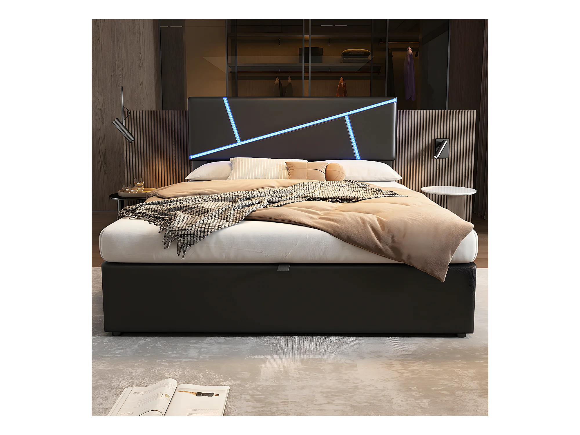 Lit coffre Lit 140x200 cm - avec rangement - Noir - Sweiko
