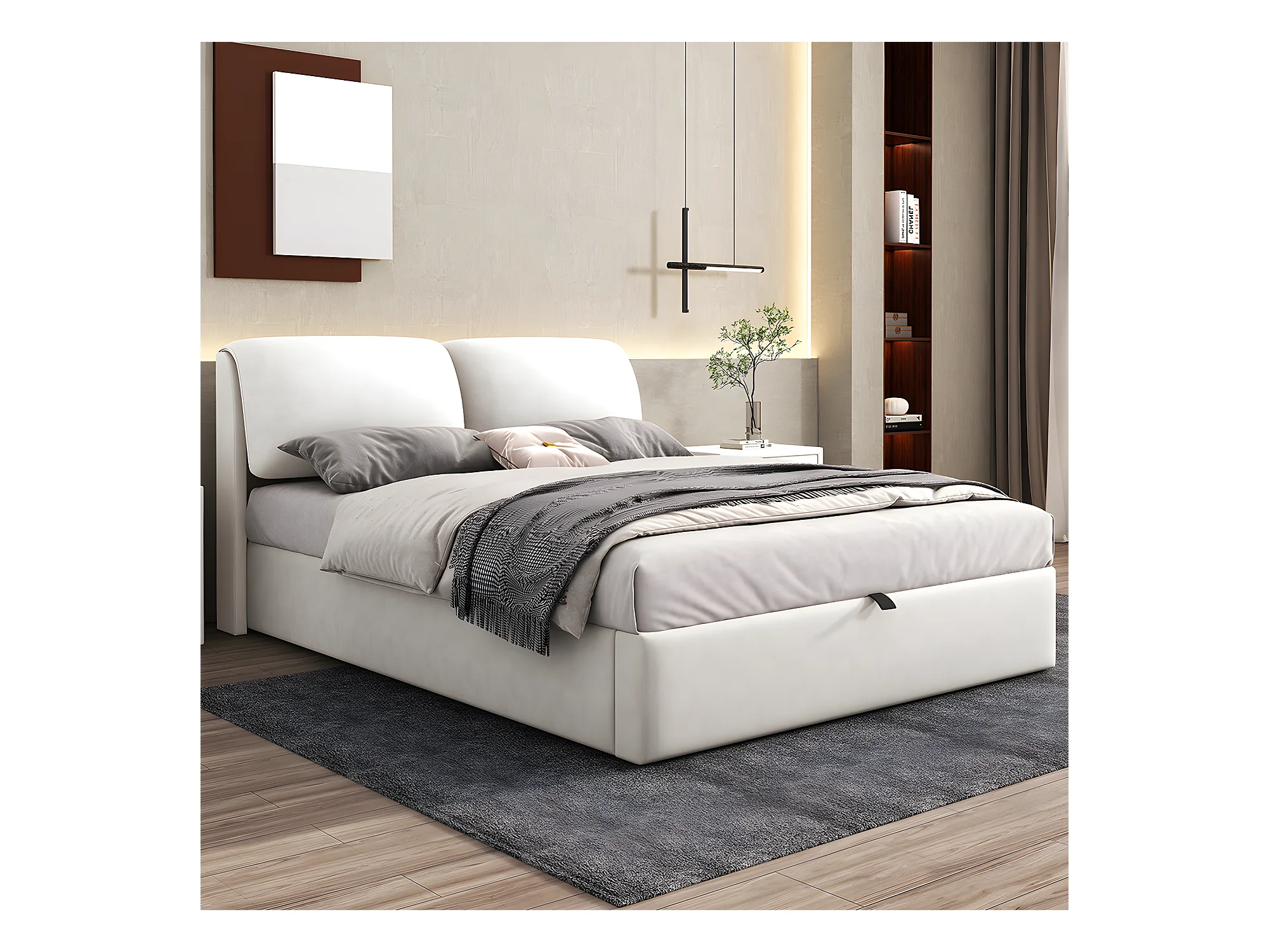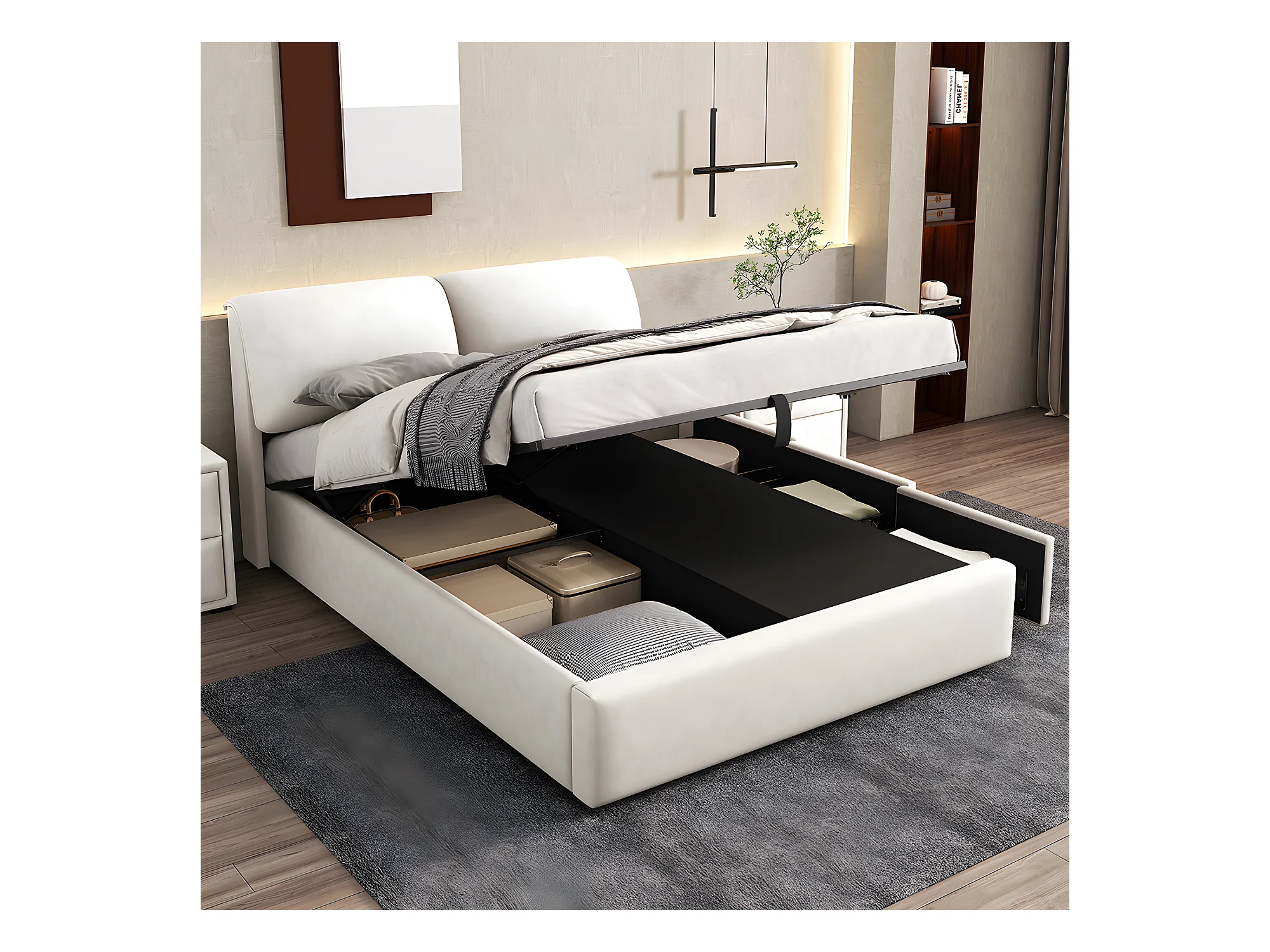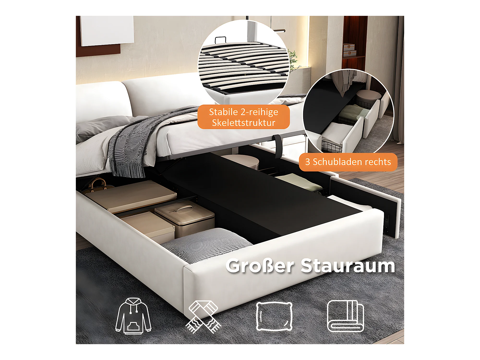 Lit coffre Lit 140x200 lit avec trois tiroirs sommier à lattes Lit adulte velours blanc
