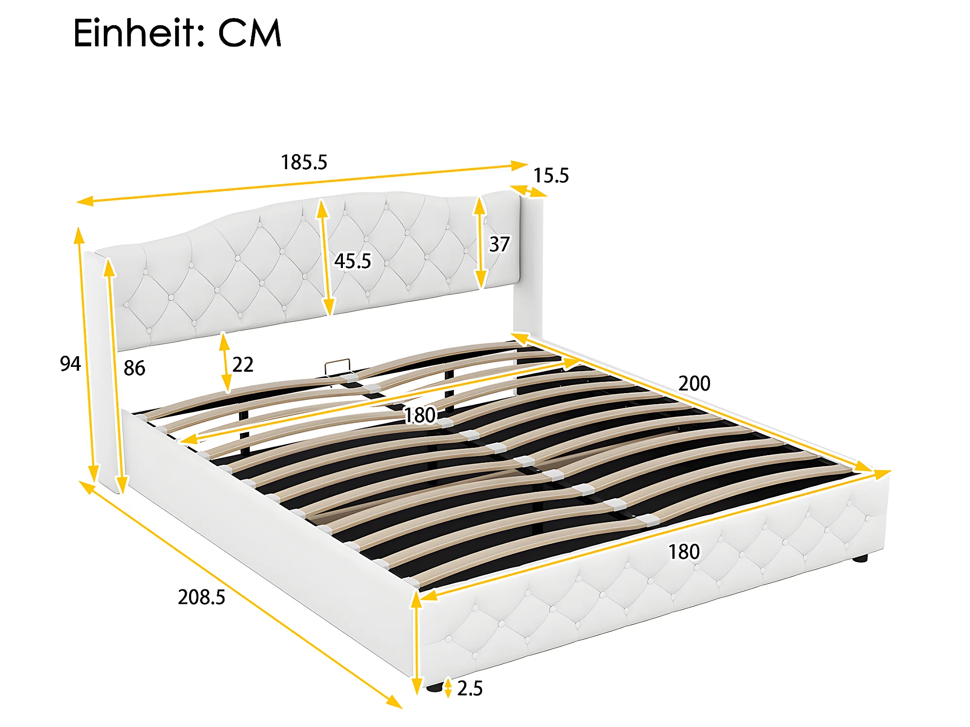 Lit coffre Lit 180 x 200 cm - Blanc - Sweiko