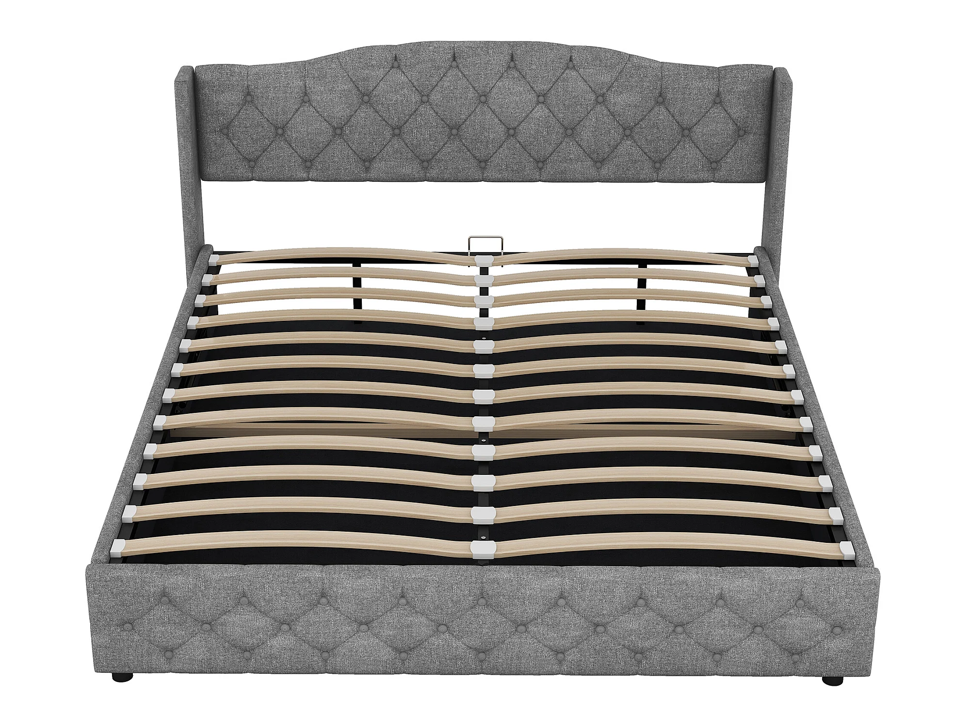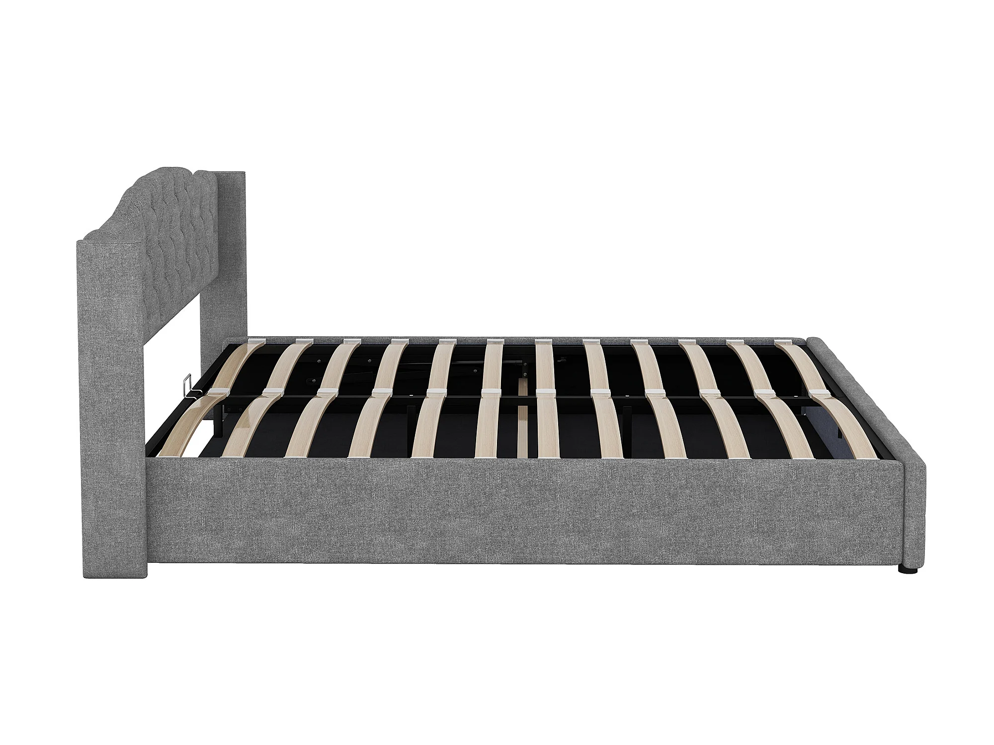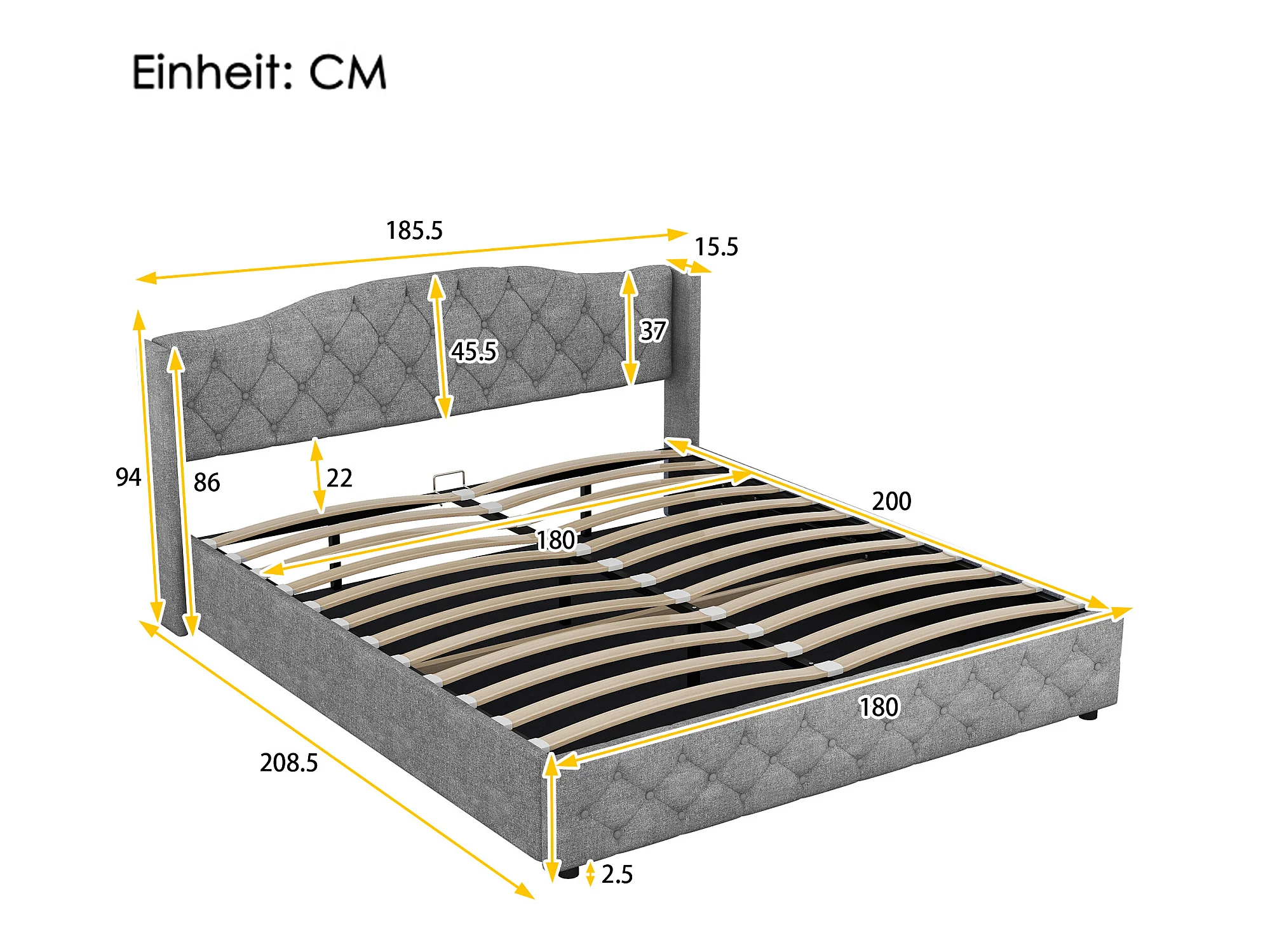 Lit coffre Lit 180 x 200 cm Lit capitonné hydraulique multifonctionnel lit double avec rangement Gris