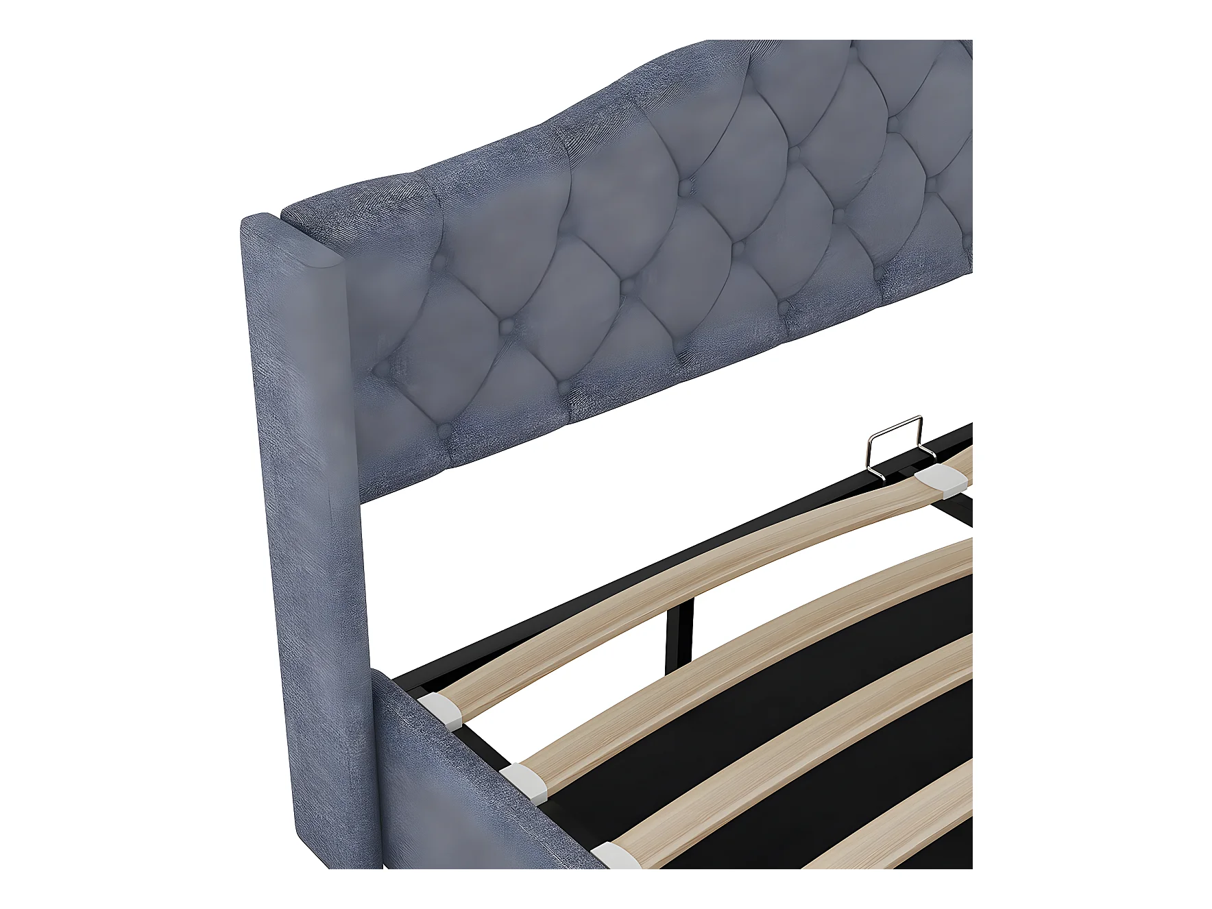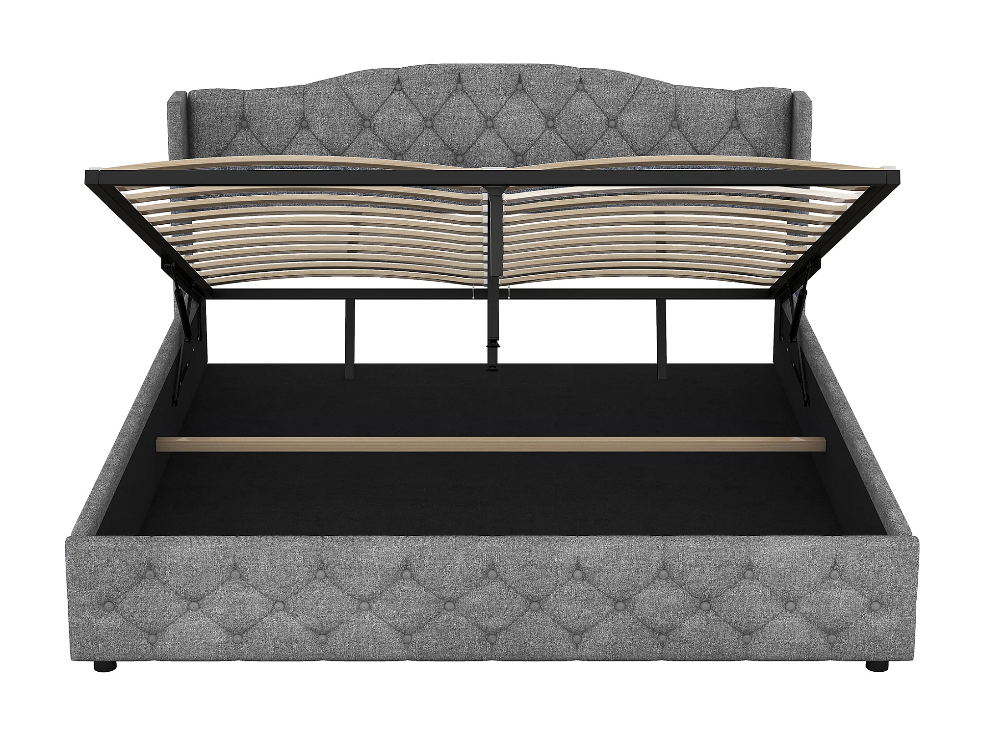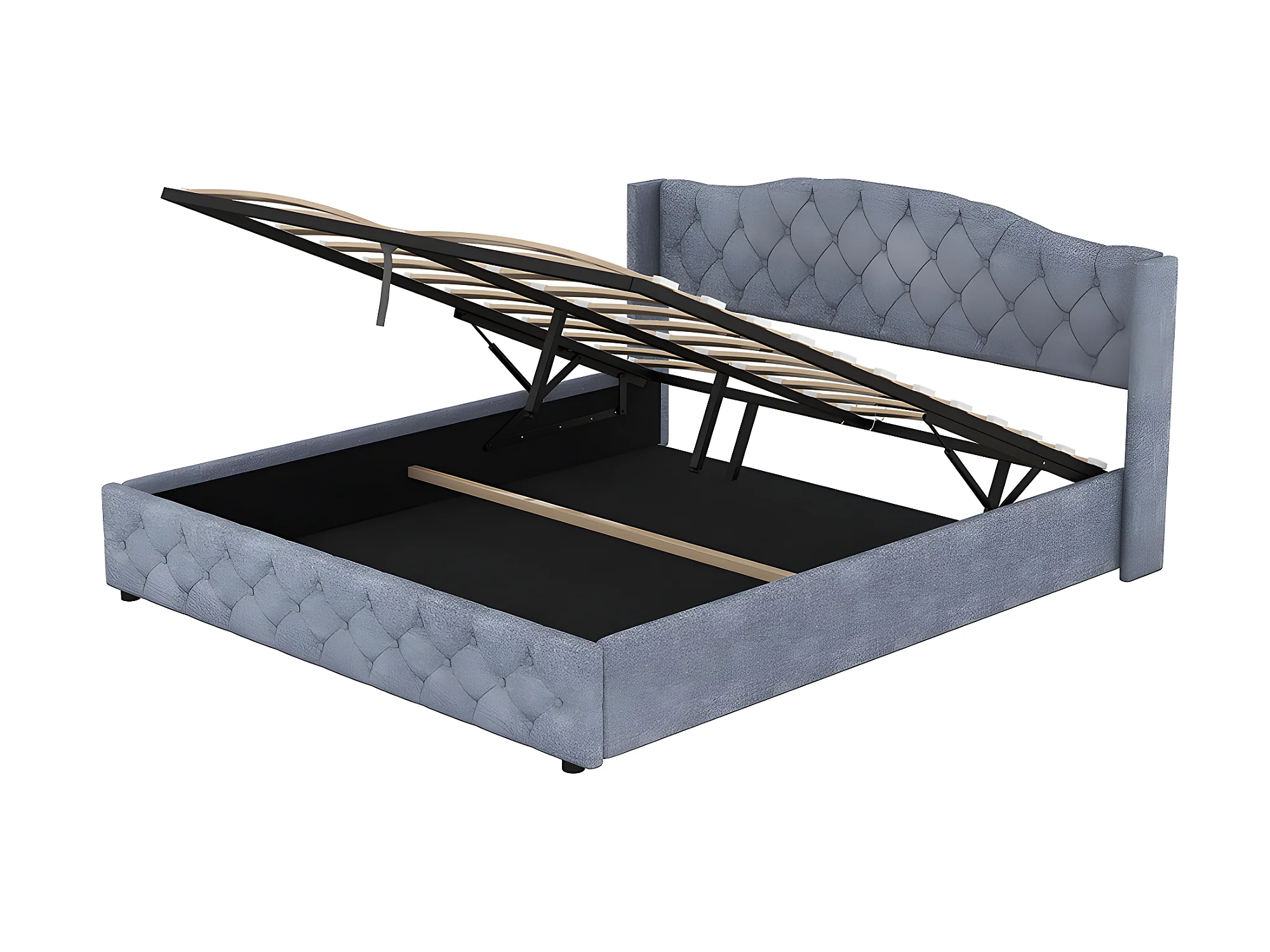Lit coffre Lit 180 x 200 cm Lit capitonné hydraulique multifonctionnel lit double avec rangement Gris