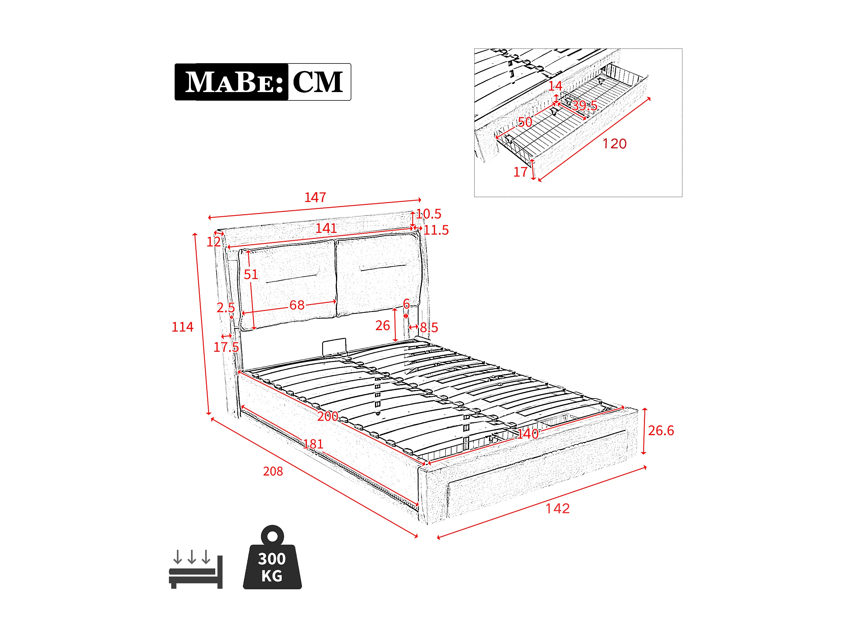 Lit coffre Lit adulte 140x200 cm 2 en 1 tiroirs de rangement LED encastrées de chaque côté du lit velours beige