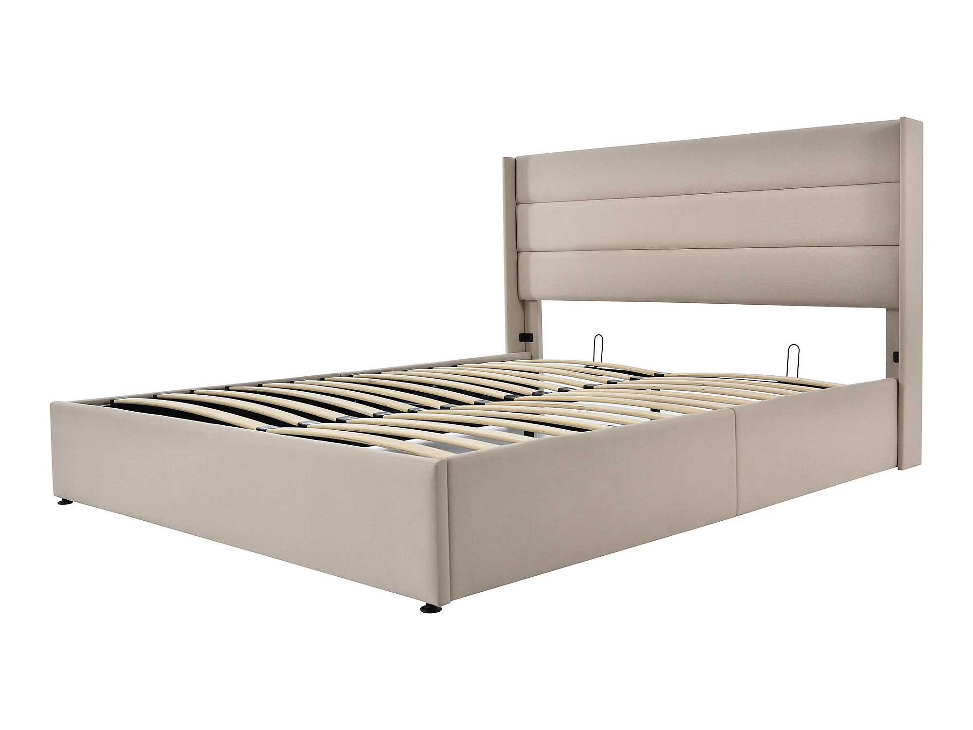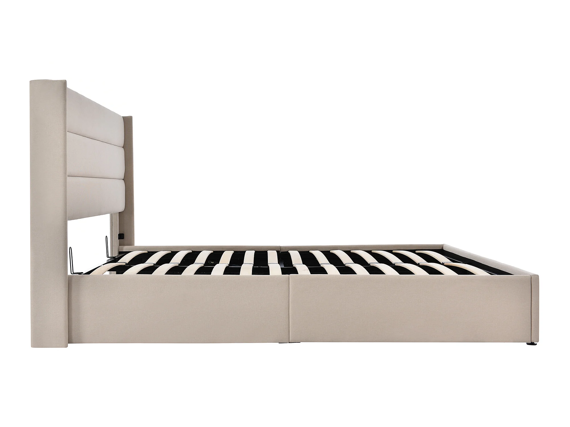 Lit coffre Lit de rangement - 180x200 cm en Lin Blanc cassé - Sweiko