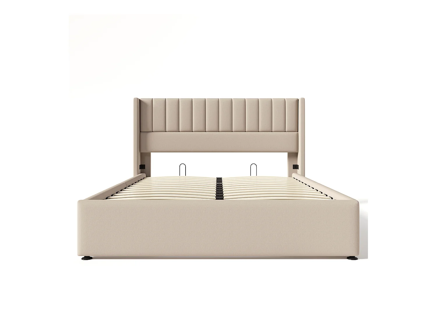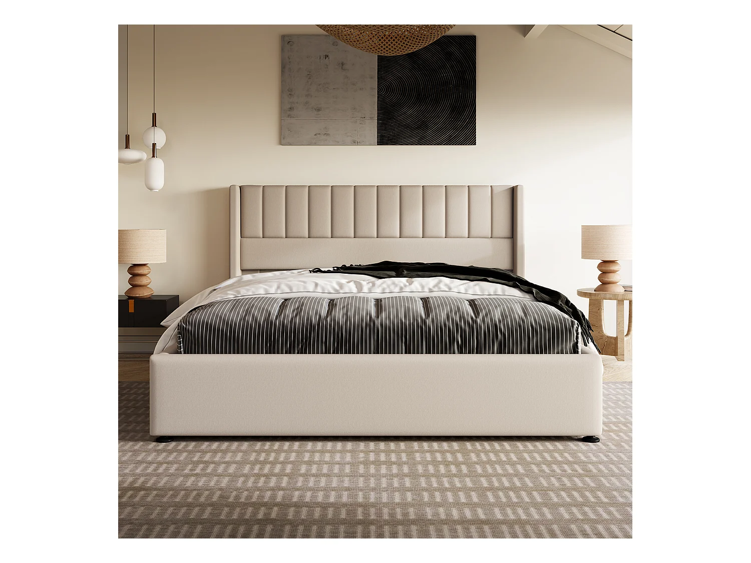 Lit coffre Lit de rangement - Lit double 160x200 cm - lin beige - Sweiko