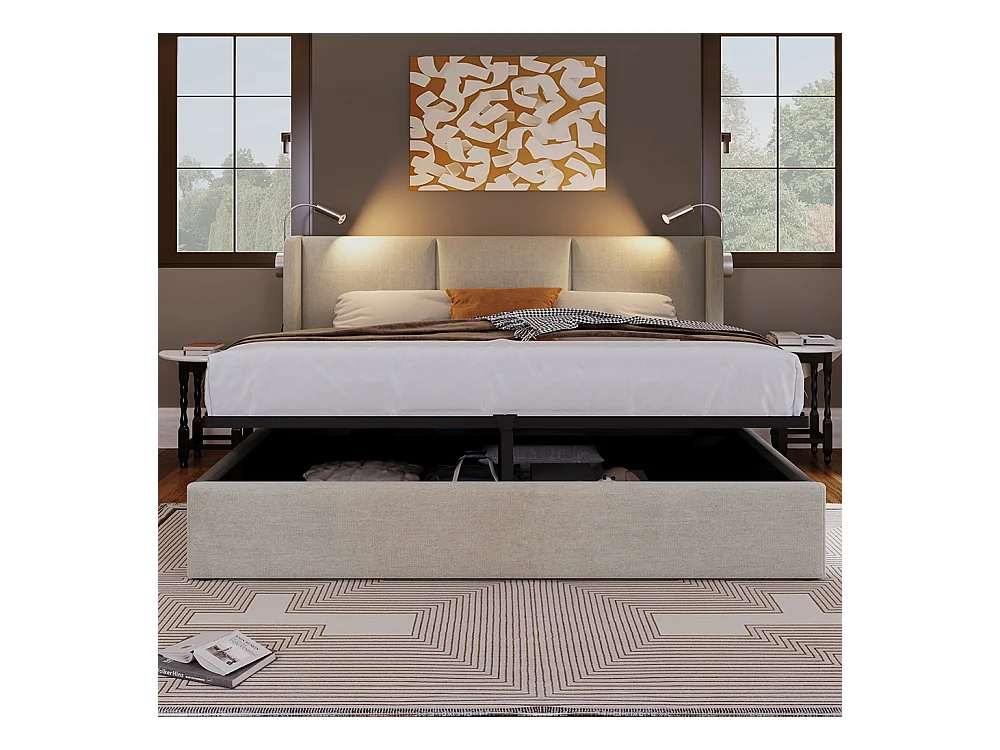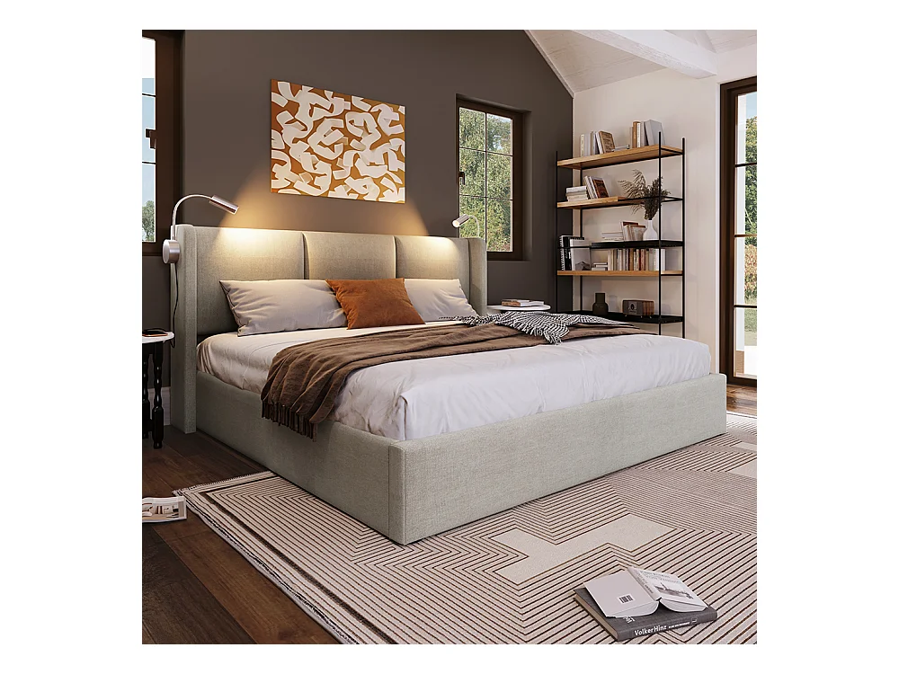 Lit coffre lit de rangement tiroirs cadre de - 140x200 cm Beige - Sweiko