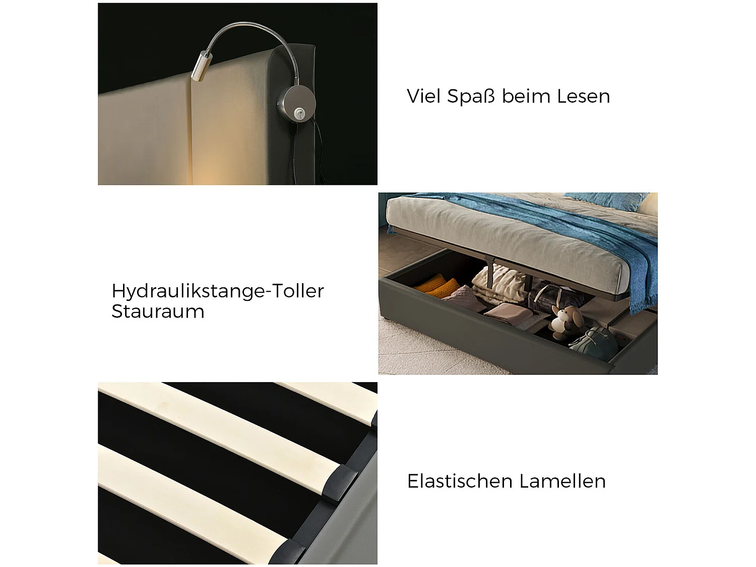 Lit coffre lit de rangement tiroirs liseuse avec chargement USB tête de lit - 160x200 - Sweiko