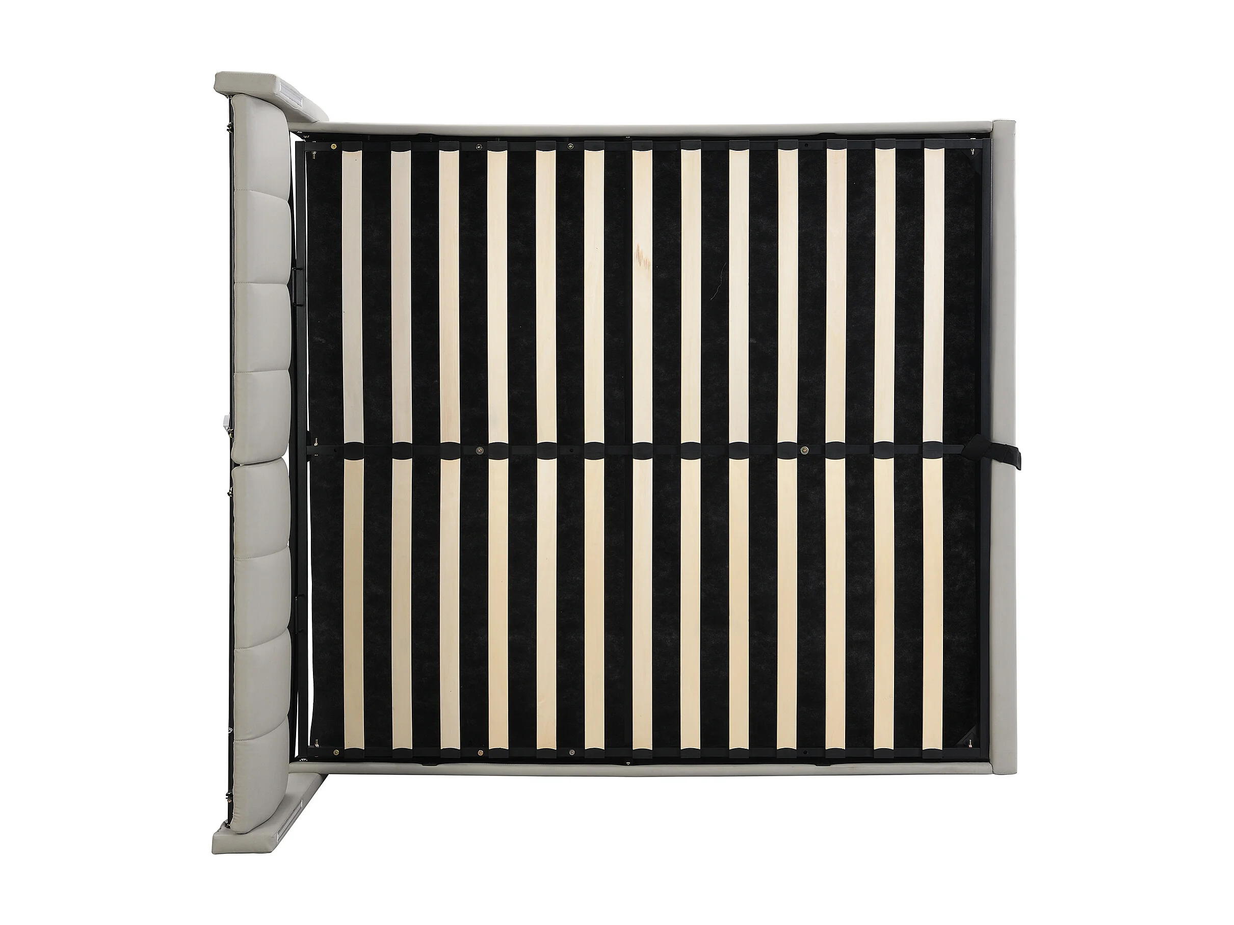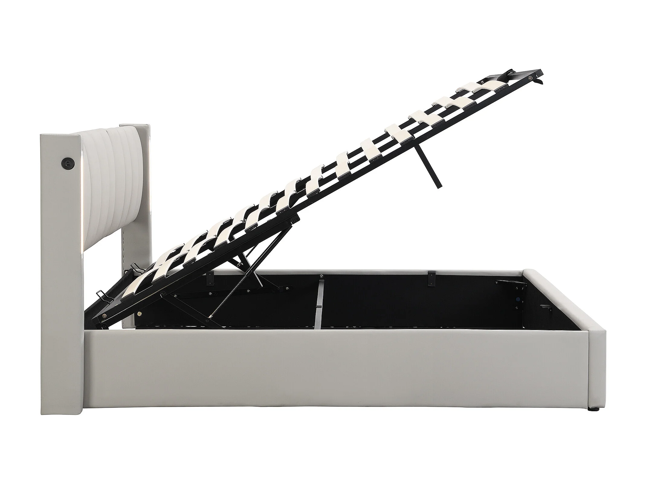 Lit coffre Lit double 140x200 cm avec ports USB, éclairage LED et tête de lit réglable, PU gris, sans matelas