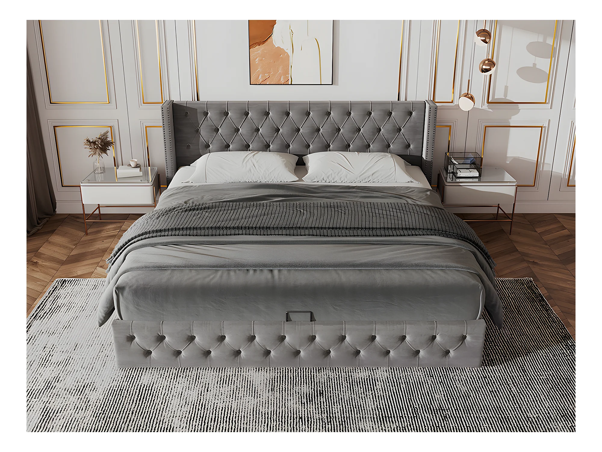 Lit coffre lit double Lit 140x190 cm - gris - Sweiko