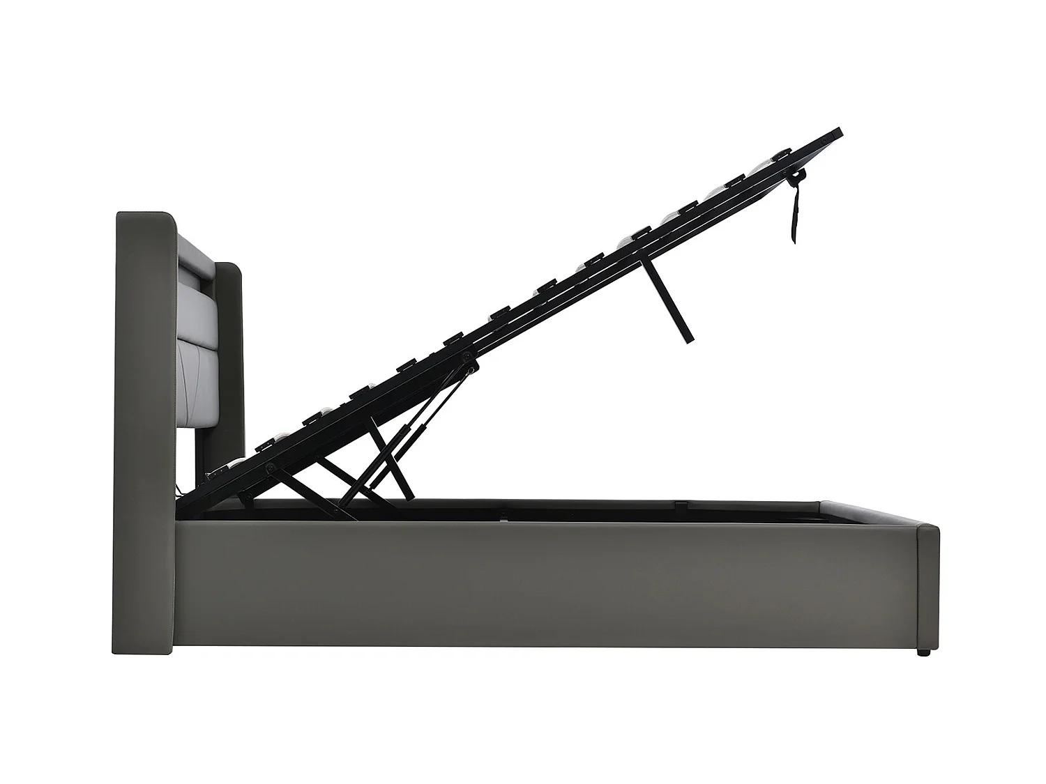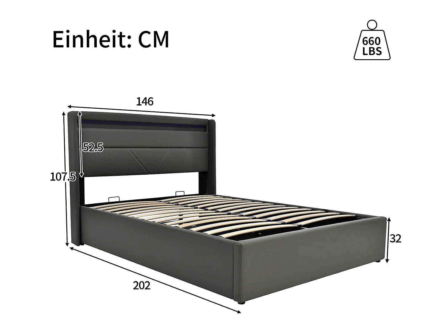 Lit coffre Lit LED double 140x190 cm - gris avec matelas - Sweiko