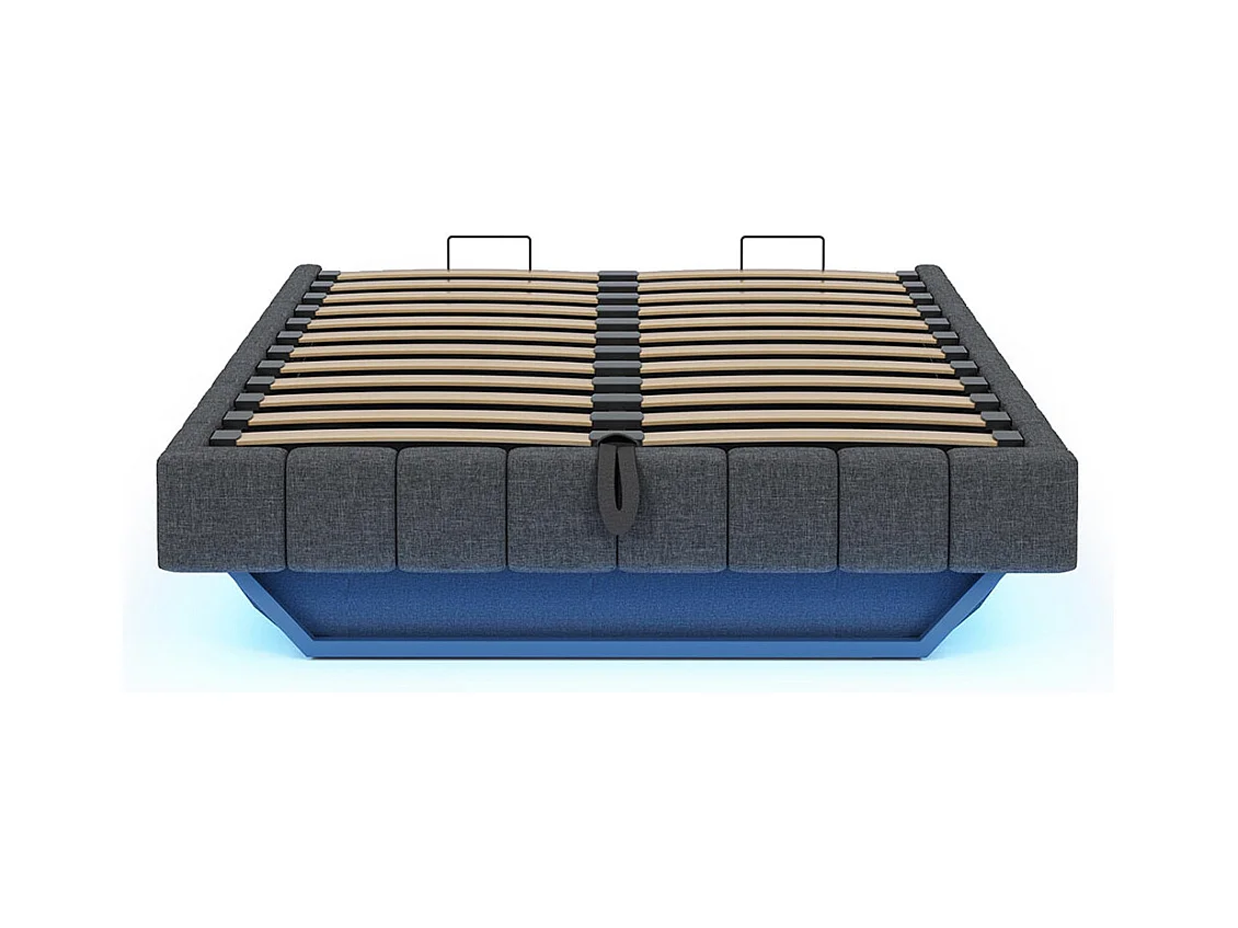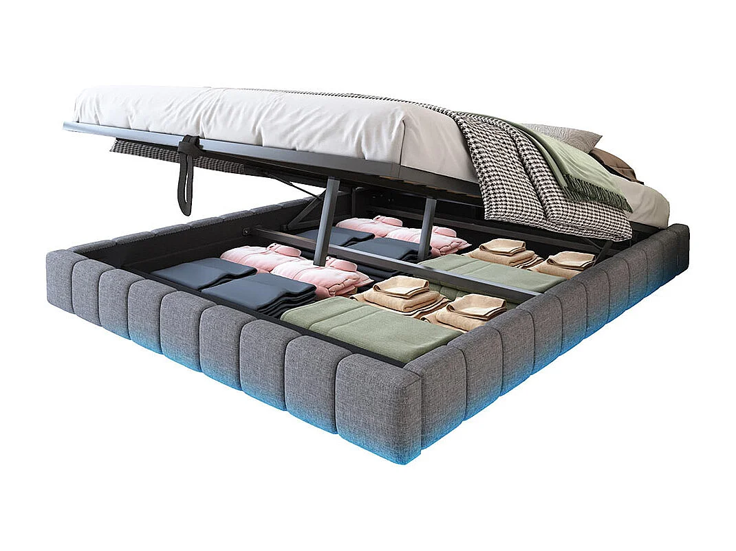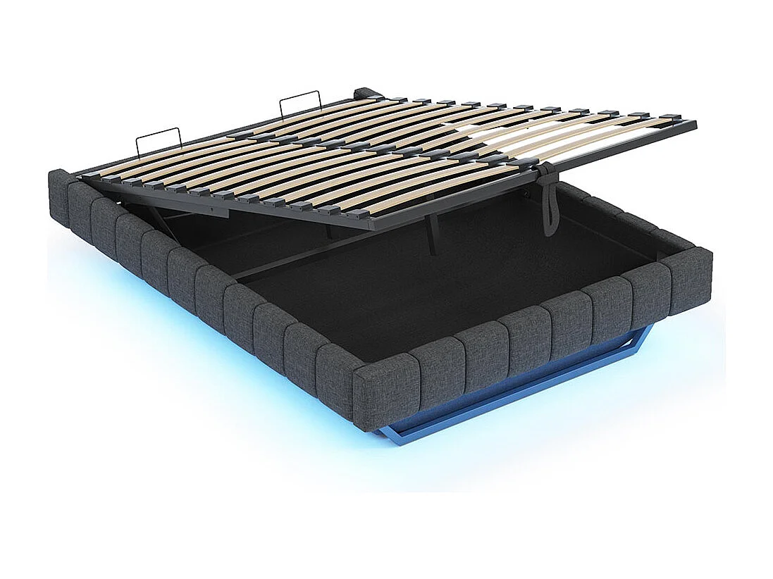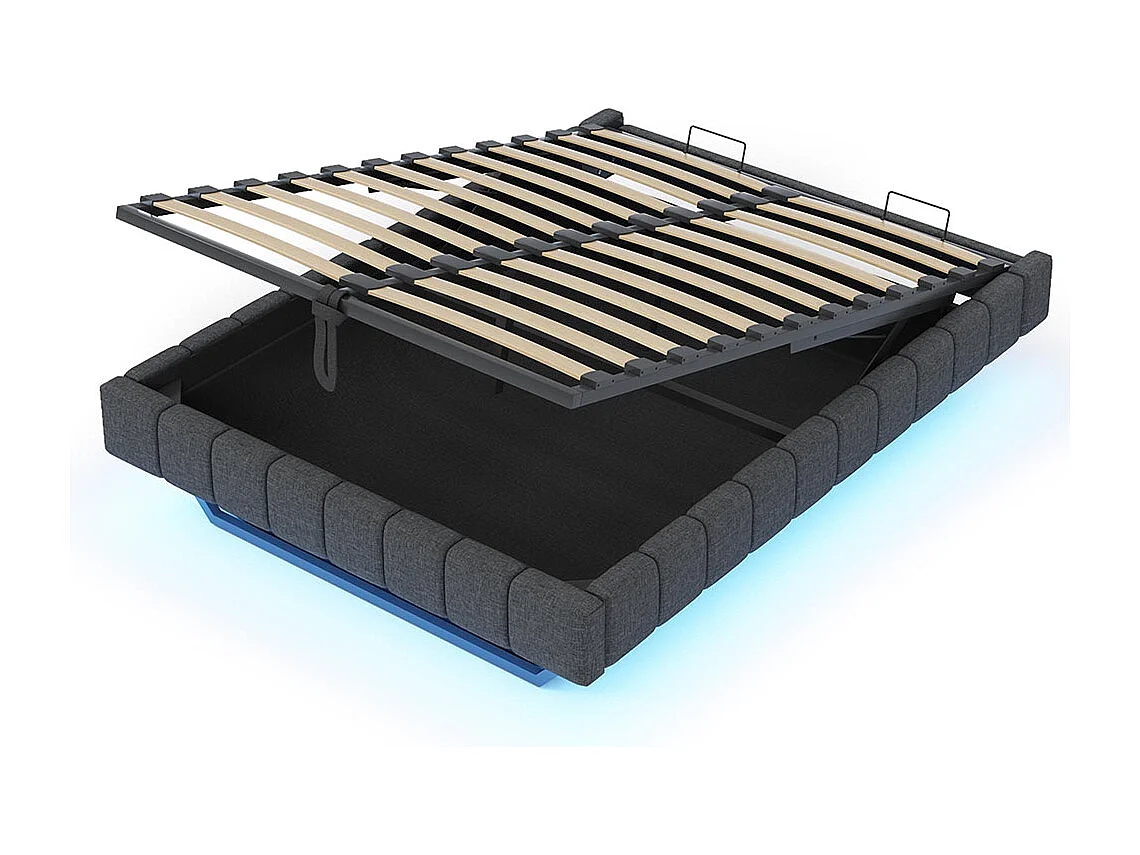Lit coffre lit rembourré 160x200 sommier à lattes hydraulique sans tête de lit avec éclairage LED lin gris