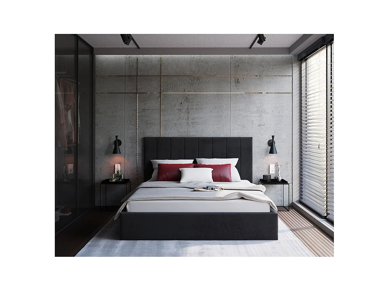 Lit coffre Lorado 140 x 190 cm avec sommier à lattes relevable Noir