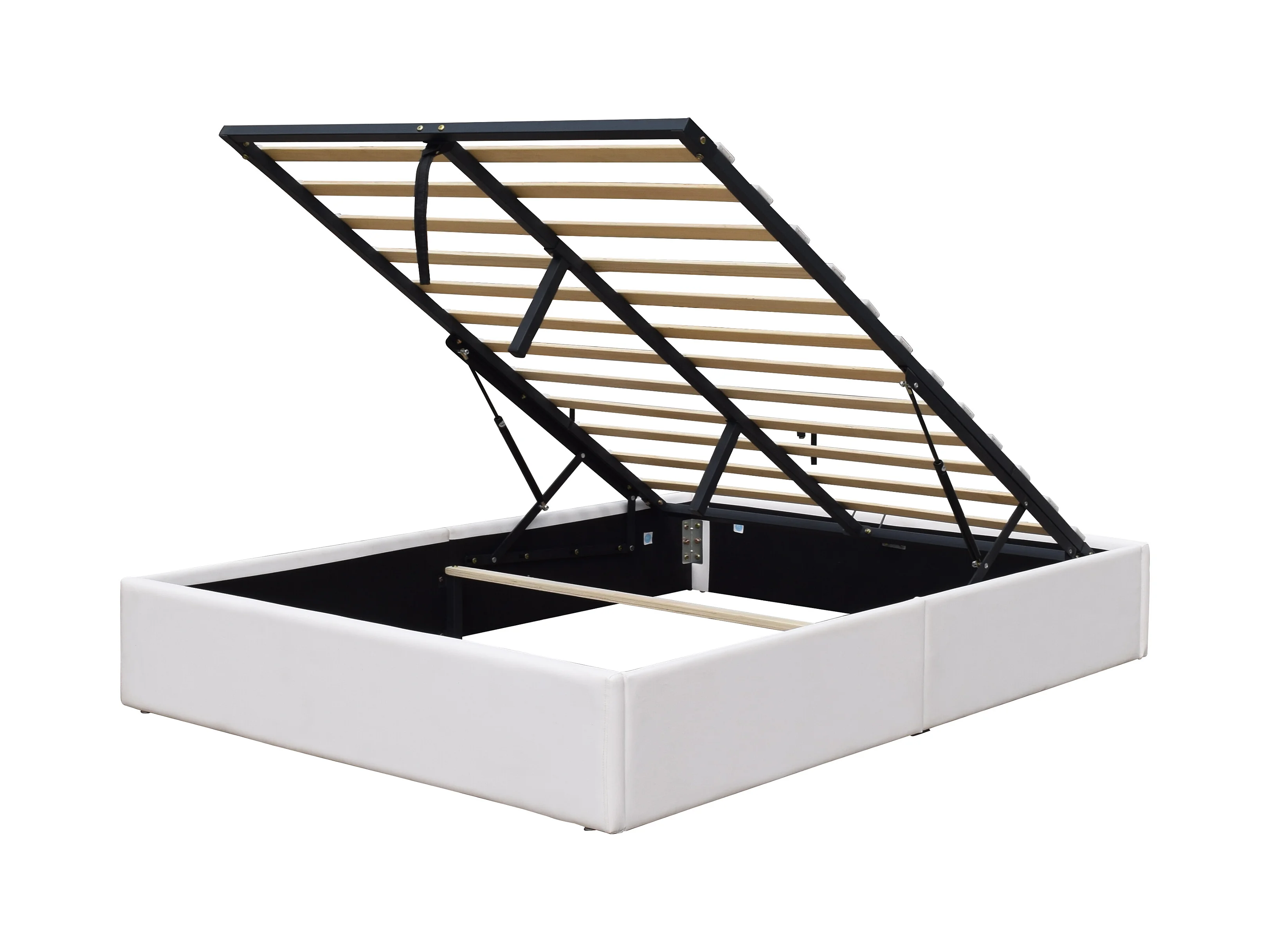 Lit Coffre blanc Loris 140x190 cm avec pieds matelas 2x12 lattes revêtement PVC facile entretien
